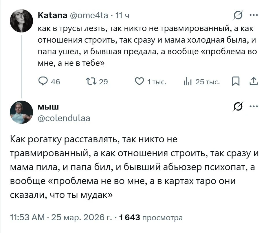 🌀 Я, дорогой, вам травмы сейчас нанесу. Или встретились два одиночества ))