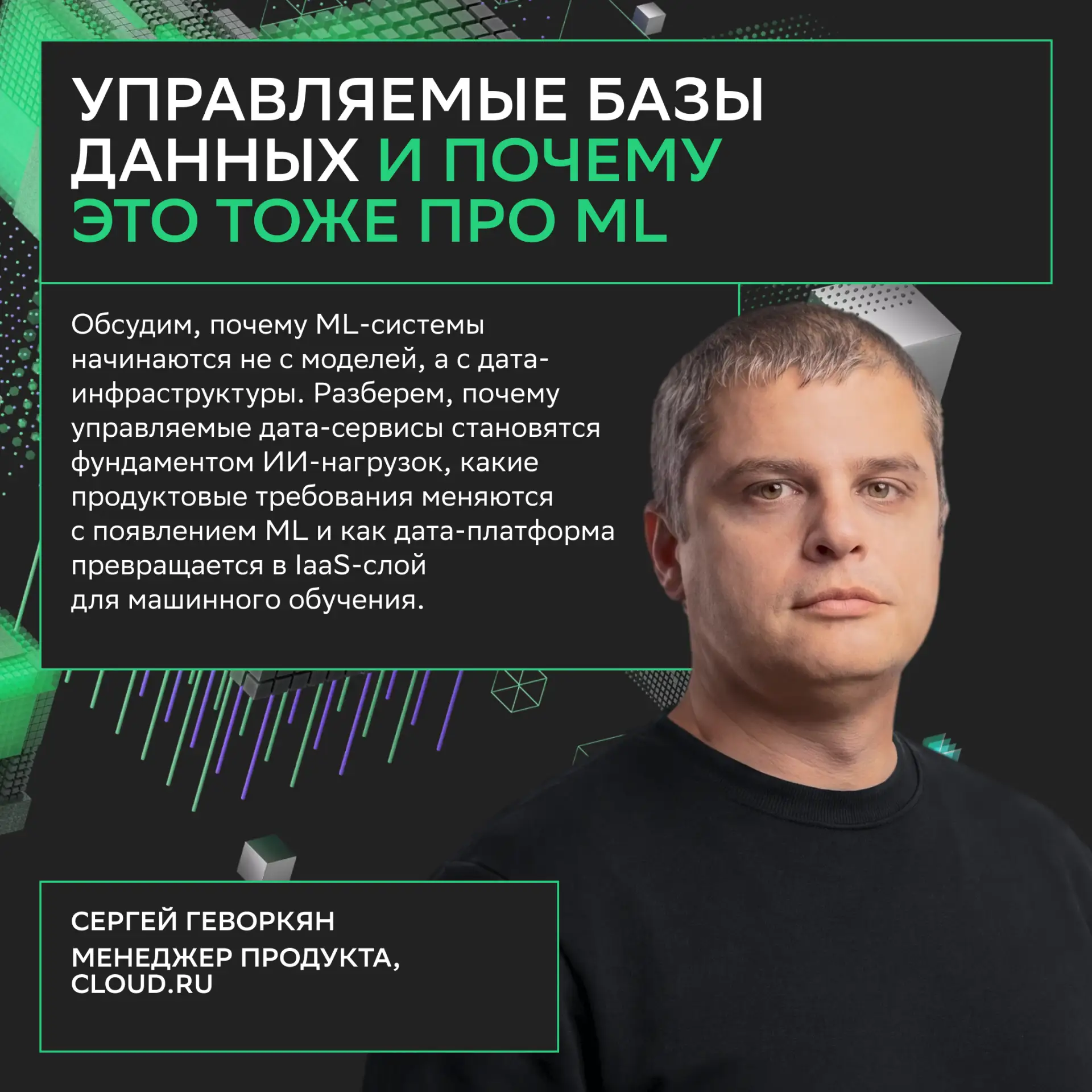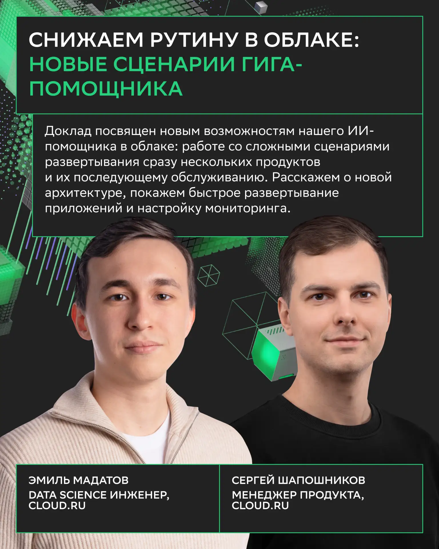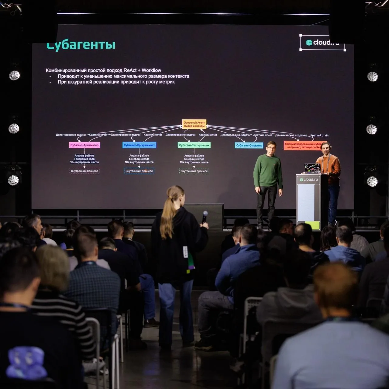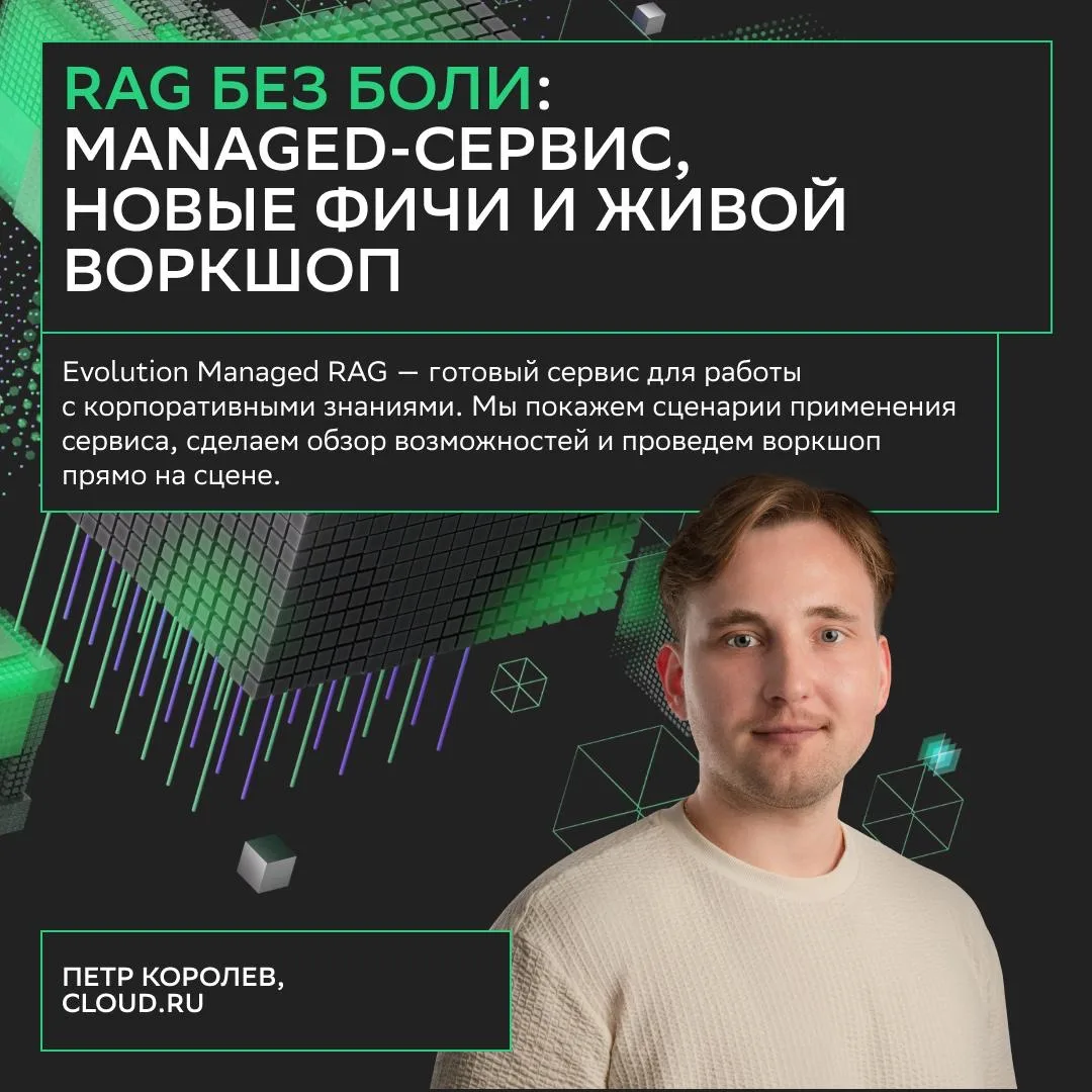 Вас ждут не только доклады, но и практические воркшопы: берите ноутбук и решайте задачи под руководством экспертов Cloud․ru.