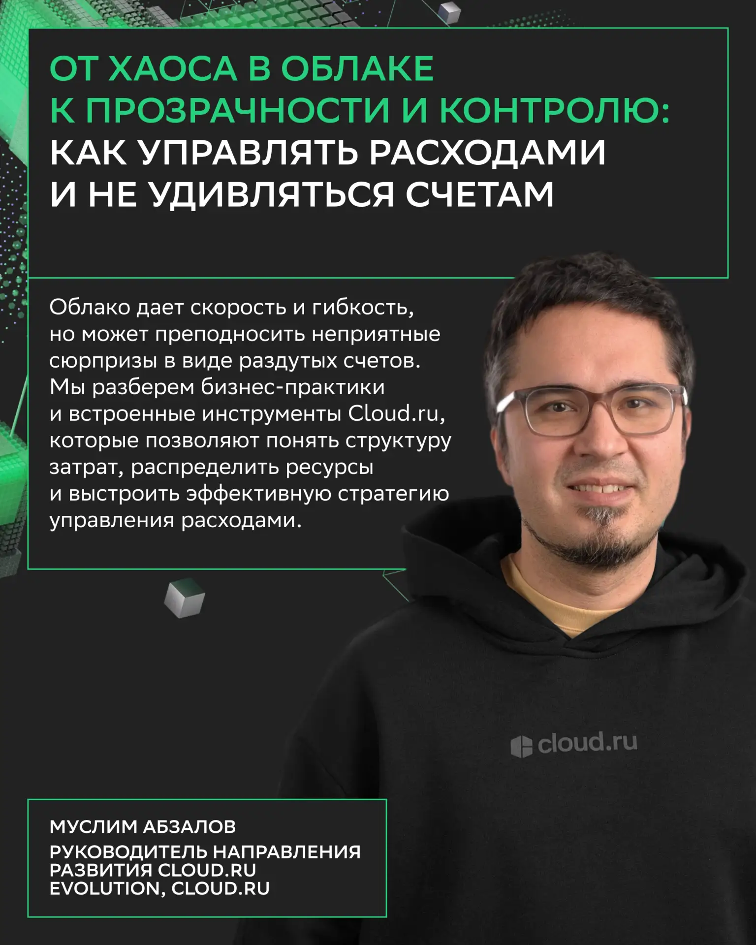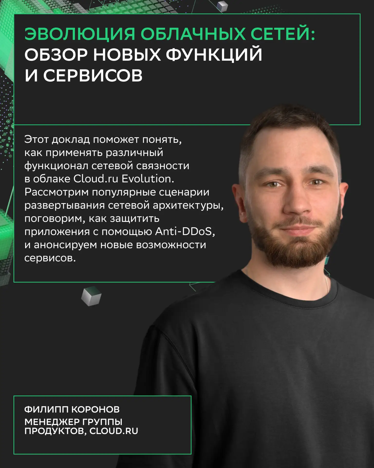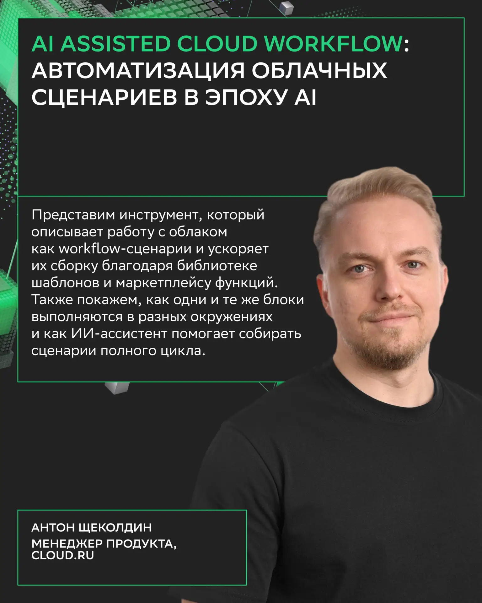 Вас ждут не только доклады, но и практические воркшопы: берите ноутбук и решайте задачи под руководством экспертов Cloud․ru.
