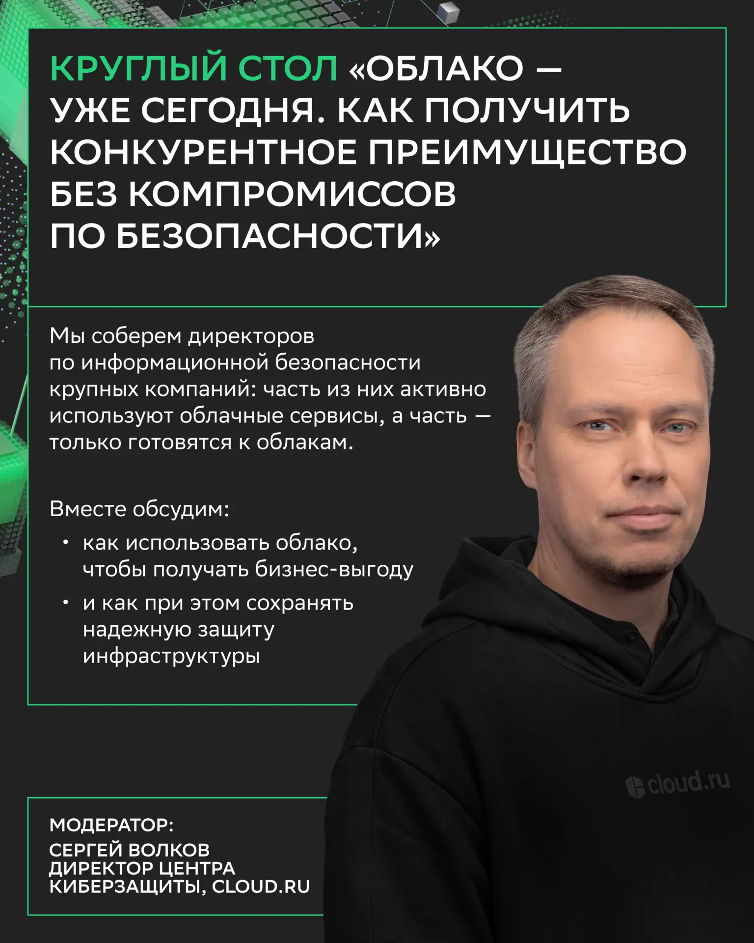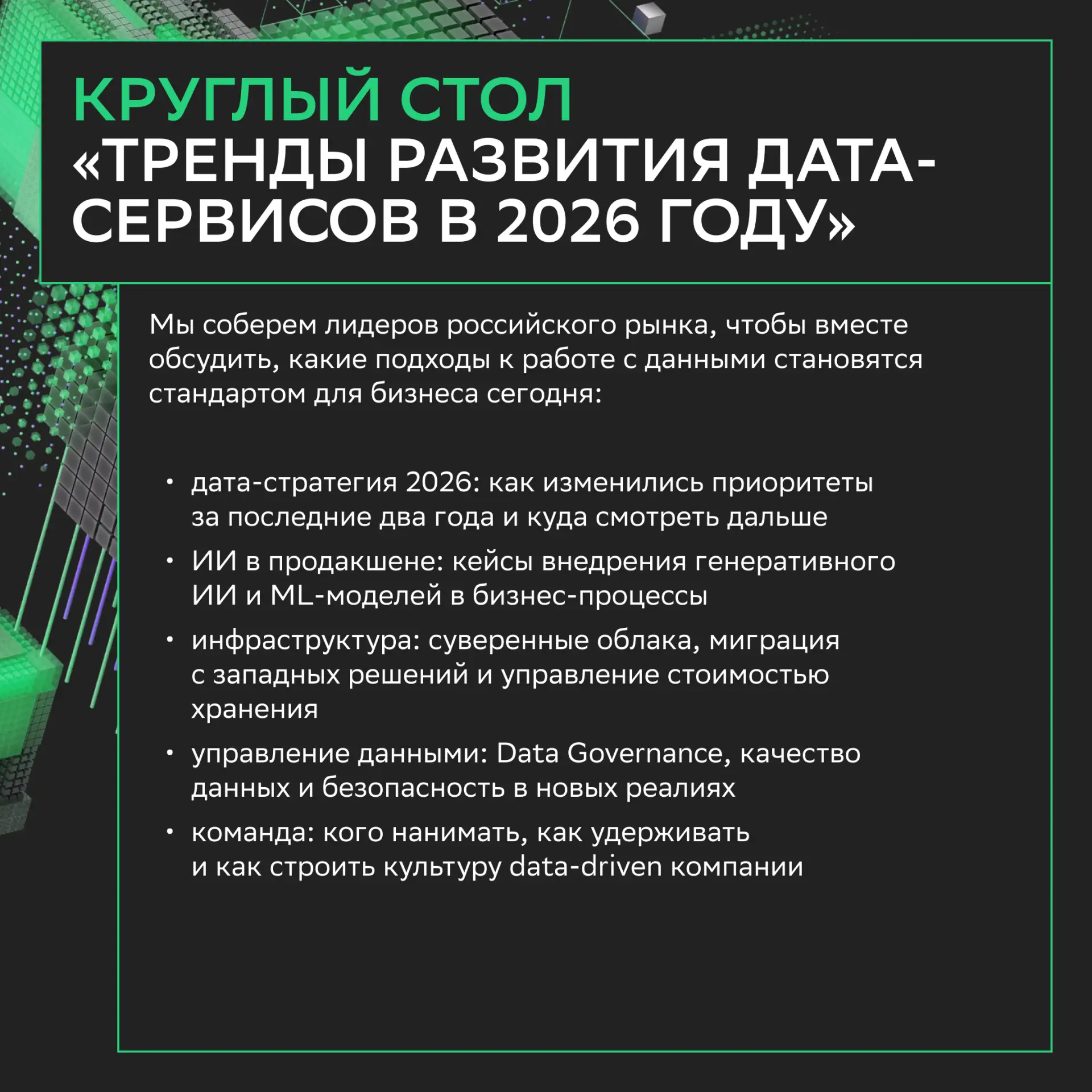 А еще поговорим о кибербезопасности, гибридных решениях, трендах в работе с данными и многом другом.