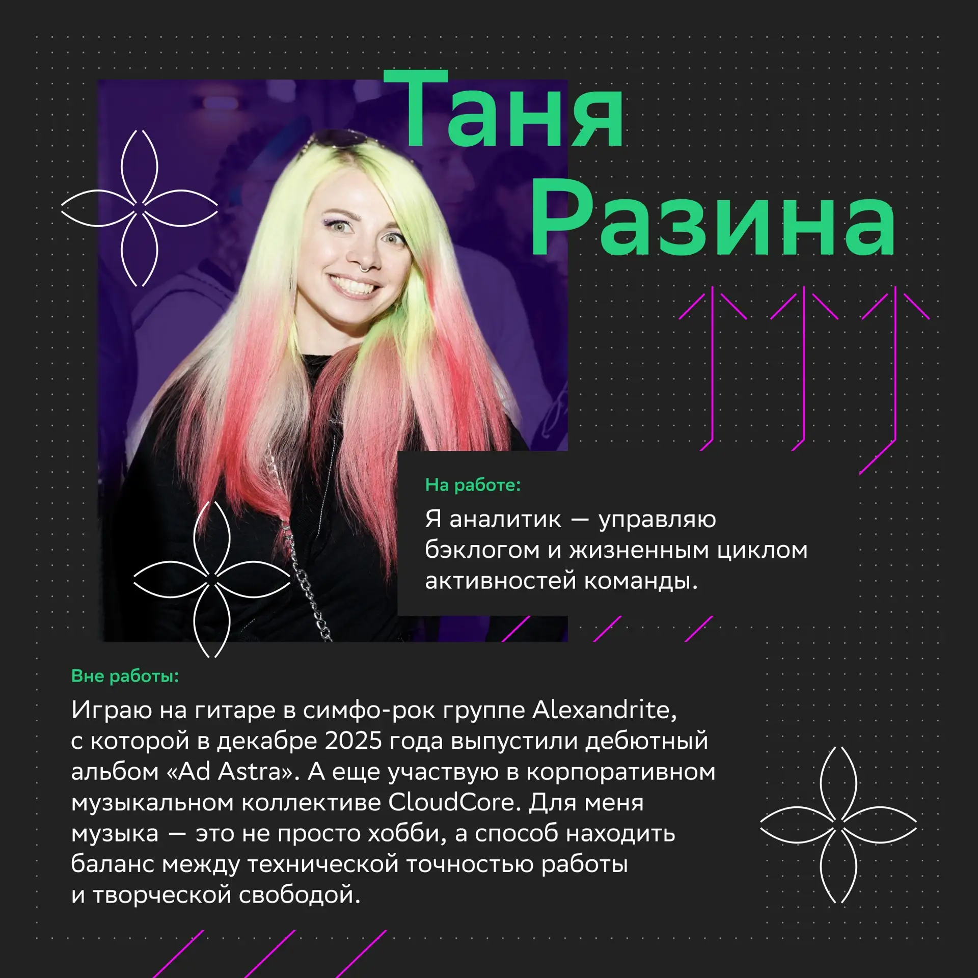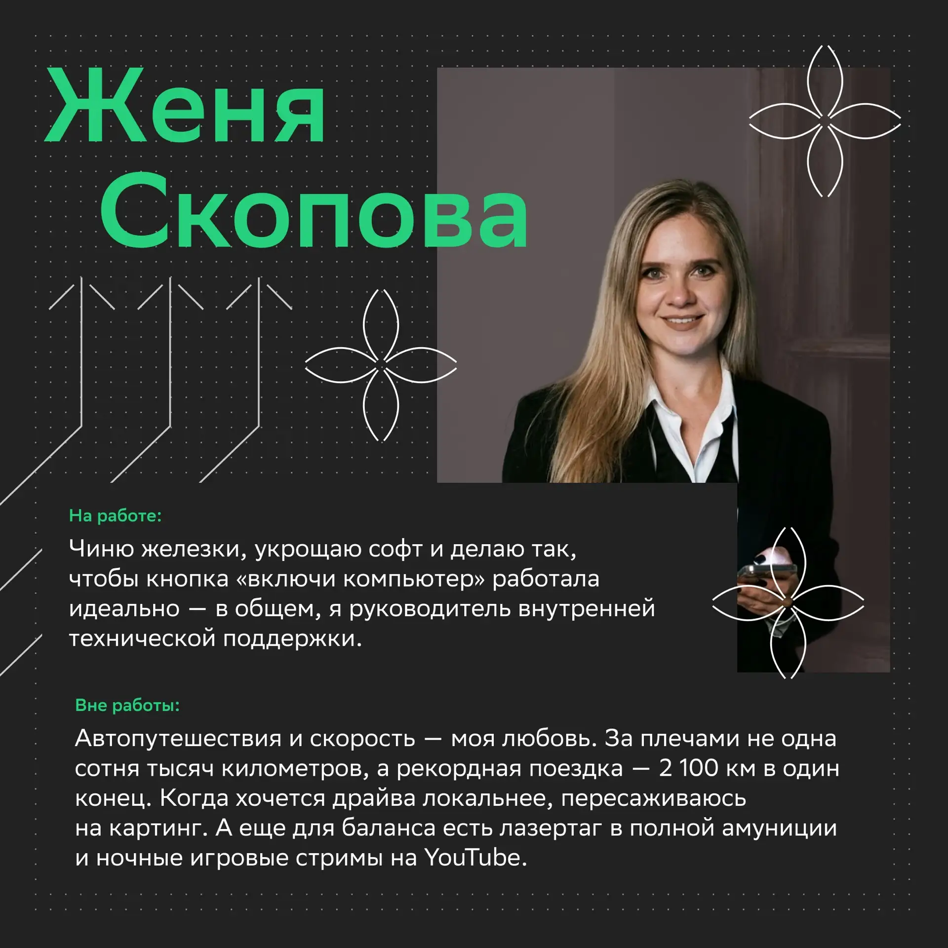 Например, через возможности обучения, классную командную атмосферу и бенефиты. Все это каждый день делает работу приятнее, а рабочую среду — по-настоящему поддерживающей.