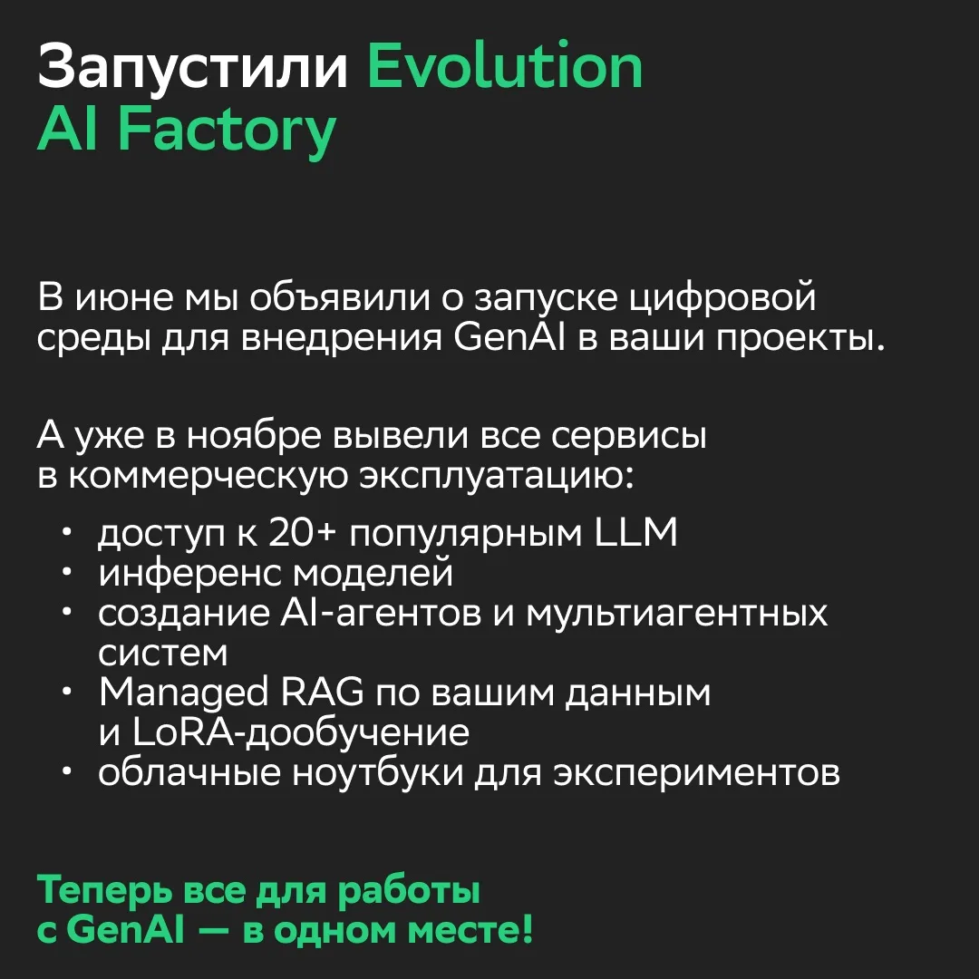 Недавно мы анонсировали коммерческий запуск Evolution AI Factory.