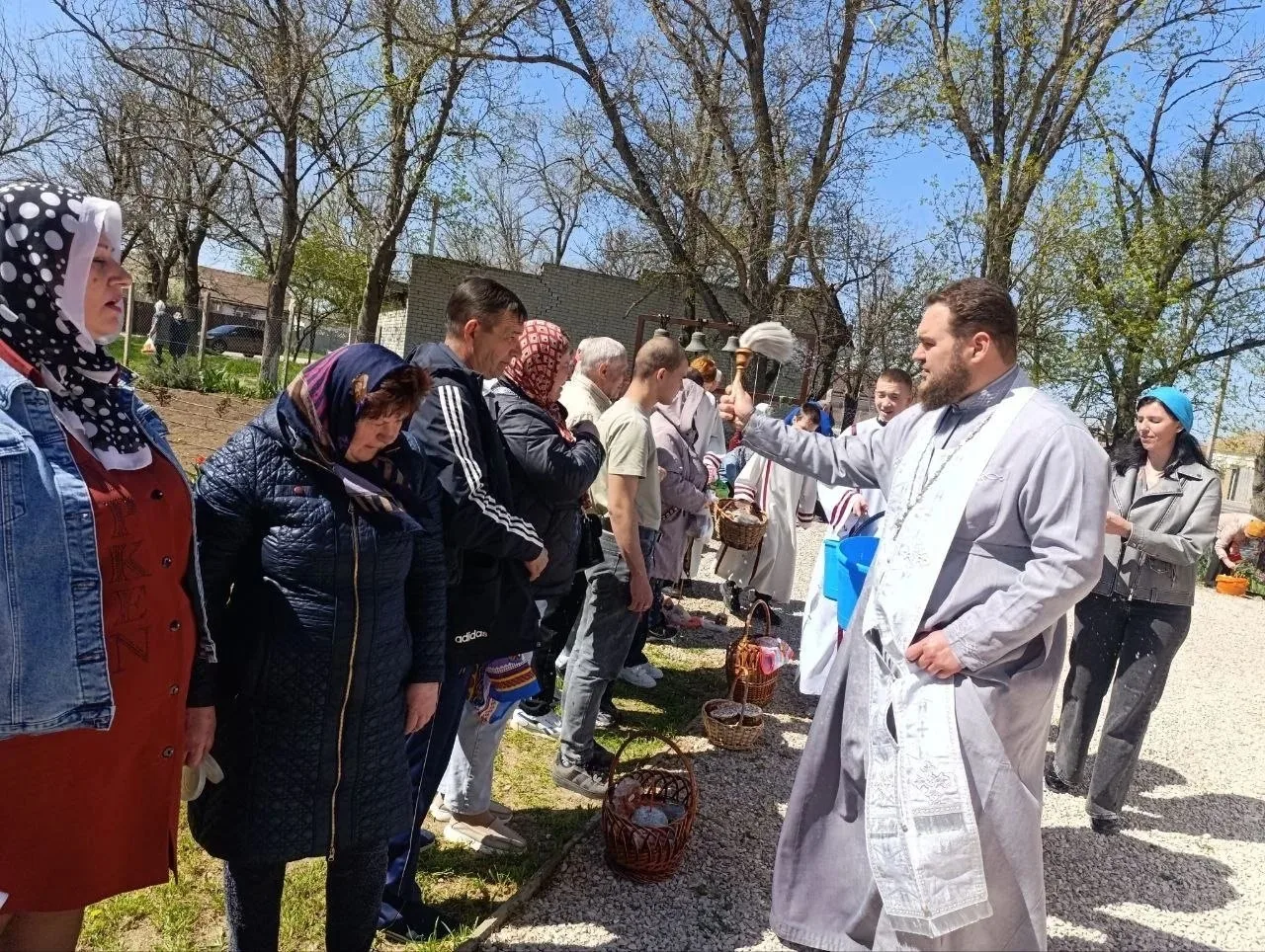 Освящение куличей, яиц, и прочей снеди в Тихвинском храме г. Джанкоя: