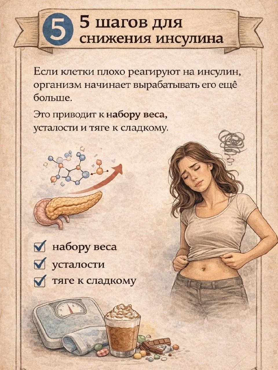 Контроль углеводов, движение, сон и баланс питания помогают вернуть чувствительность к инсулину и снизить тягу к сладкому.