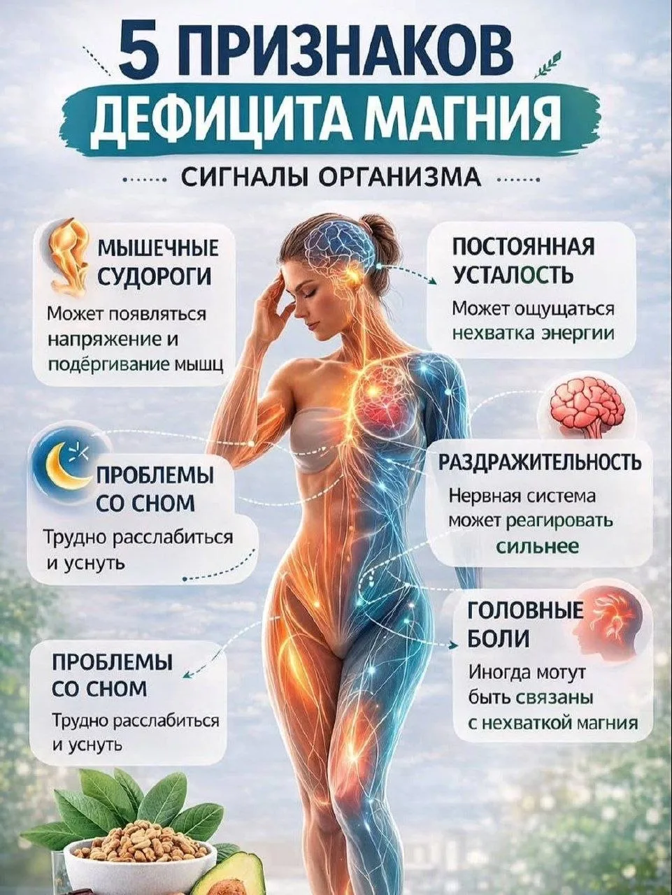 Магний влияет на сон, мышцы и работу нервной системы.
