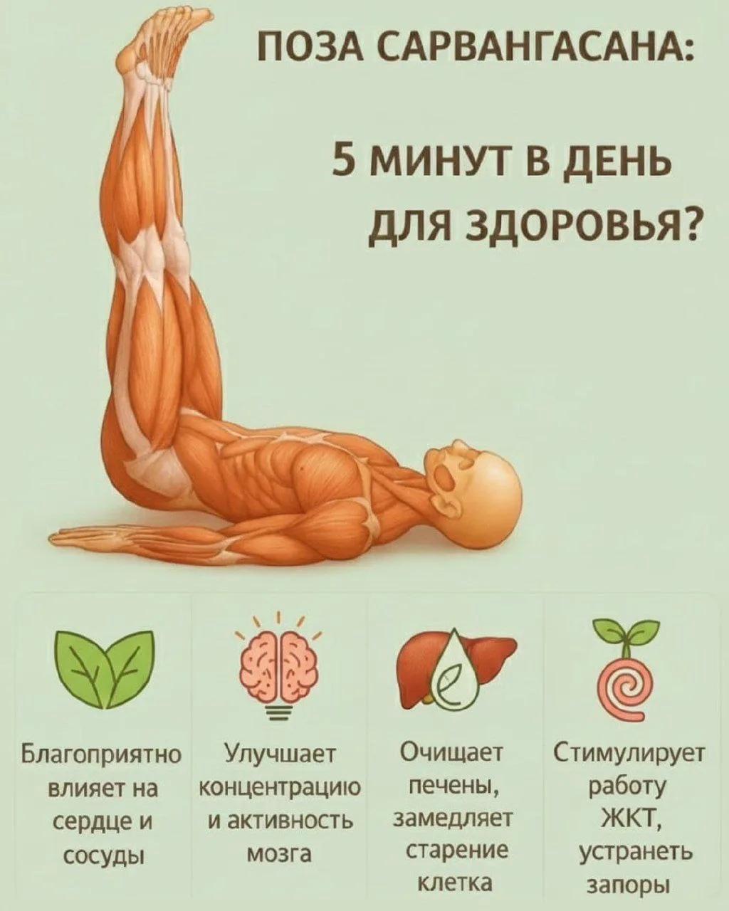 🌳 Поза Сарвангасана (берёзка): 5 минут в день — что реально даёт телу.