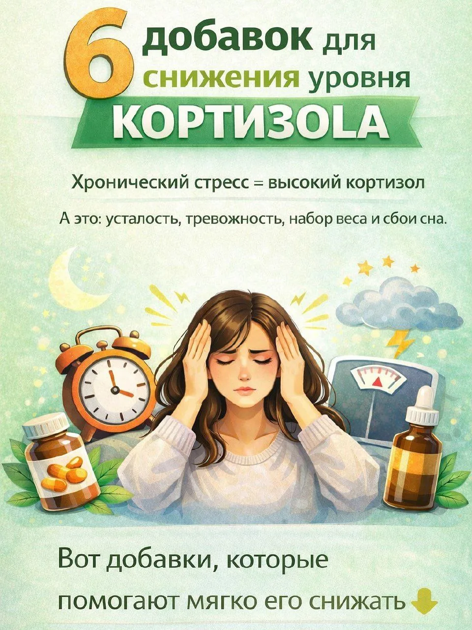 💊 Хронический стресс = повышенный кортизол.