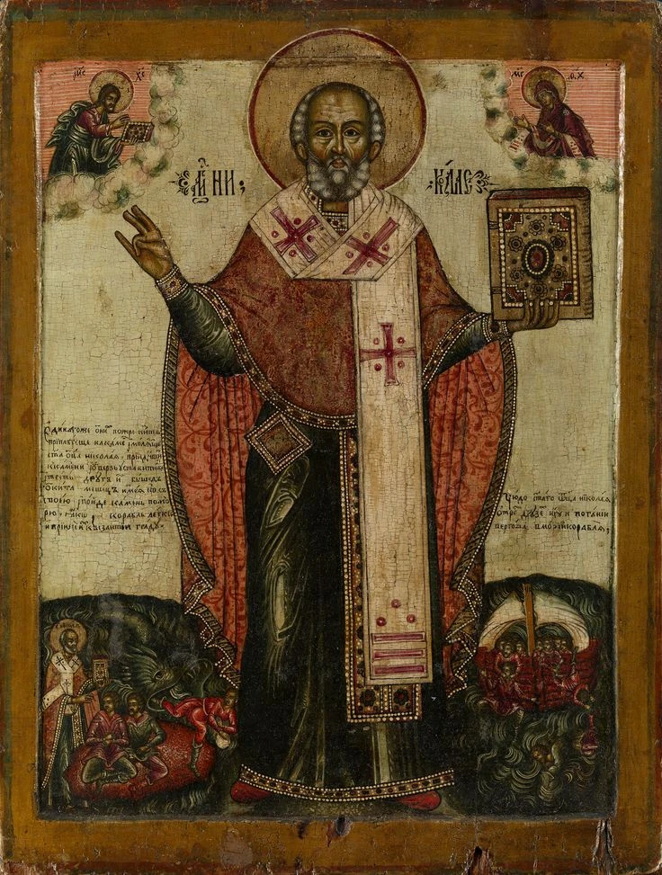 О, святи́телю Христо́в Нико́лае! Услы́ши нас, гре́шных, моля́щихся тебе́ (имя) и призыва́ющих в по́мощь ско́рое предста́тельство твое́. Ми́лостива к нам сотвори́ Бо́га на́шего, да по Свое́й бла́гости пода́ст нам (содержание прошения). Изба́ви нас, уго́дниче Христо́в, от зол, находя́щих на нас, и во вся́кой жите́йской нужде́ и потре́бе посли́ нам свою́ по́мощь. Ами́нь.