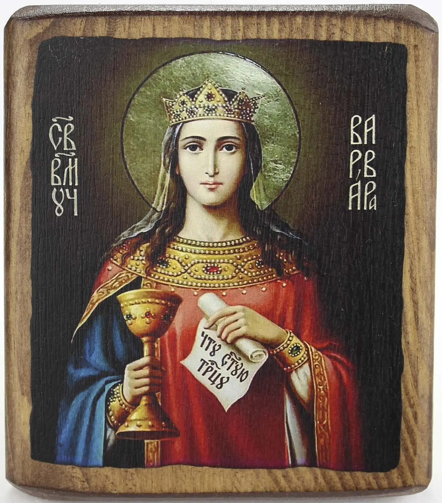 Свята́я великому́ченице Христо́ва Варва́ро! Моли́ с на́ми и о нас, раба́х Бо́жиих (имена), умоля́емаго от Своего́ милосе́рдия Бо́га, да ми́лостивно услы́шит нас, прося́щих Его́ благосты́ню, и не отста́вит от нас вся ко спасе́нию и житию́ ну́жная проше́ния, христиа́нскую же кончи́ну жития́ на́шего безболе́зненну, непосты́дну, ми́рну и Боже́ственных Тайн прича́стну да да́рует, да благода́тию Бо́жиею и твои́м те́плым предста́тельством, душе́ю и те́лом всегда́ здра́ви пребыва́юще, сла́вим ди́внаго во святы́х Свои́х Бо́га Изра́илева, не удаля́ющаго по́мощи Своея́ от нас, всегда́, ны́не и при́сно и во ве́ки веко́в. Ами́нь.