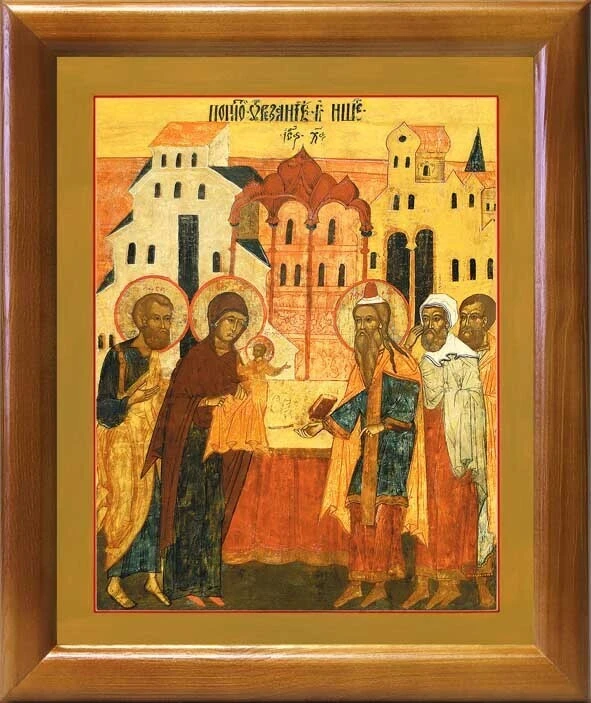 Днесь благоволения Божия предображение и человеков спасения проповедание в храме Божии ясно Дева является и Христа всем предвозвещает. Той и мы велегласно возопиим: радуйся, смотрения Зиждителева исполнение.
