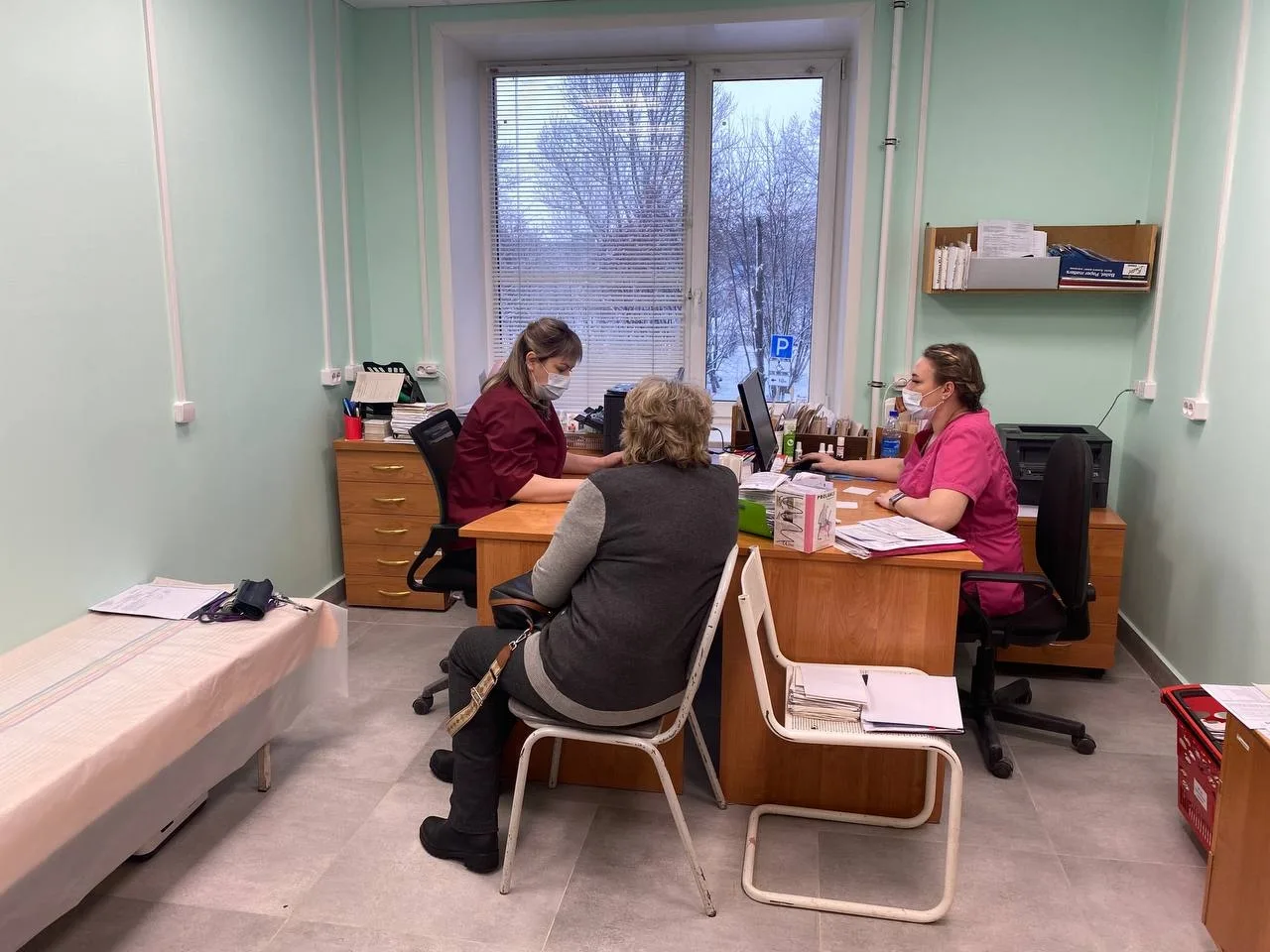 Важно, что учреждение продолжает работать в обычном режиме. Для удобства посетителей на время работ регистратура временно перемещена в специально оборудованное помещение, а персонал помогает сориентироваться внутри поликлиники.
