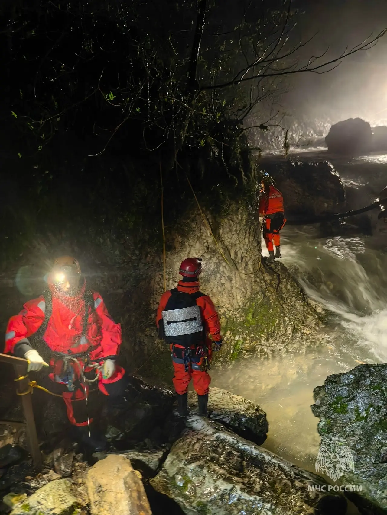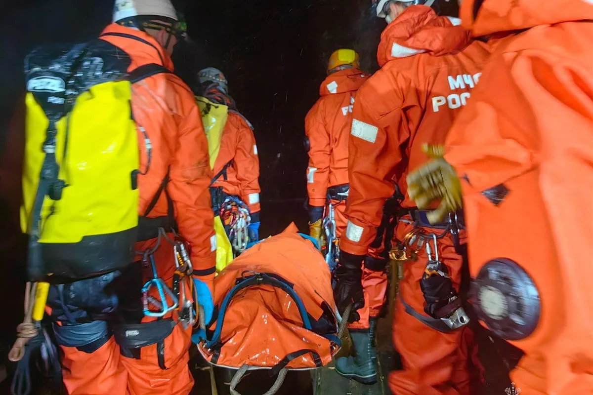 Тело погибшей девушки из заполненной водой пещеры достали спасатели. Его поднимали с помощью спелеоснаряжения на высоту 30 метров.