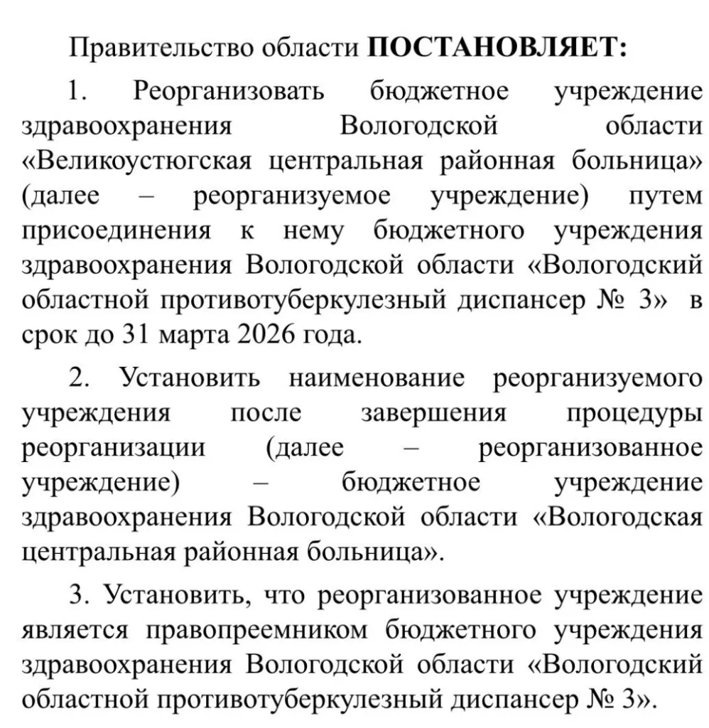К центральной районной больнице Великого Устюга присоединят Вологодский областной противотуберкулезный диспансер № 3