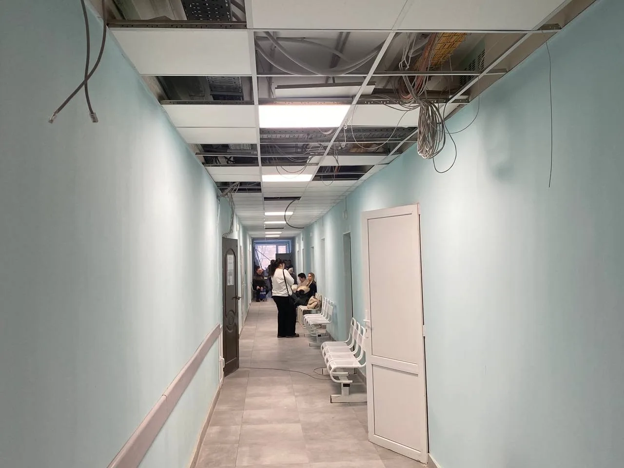 Общая готовность объекта уже составляет около 90%. Внутри здания идут отделочные работы и замена электропроводки, обновляется холл регистратуры.