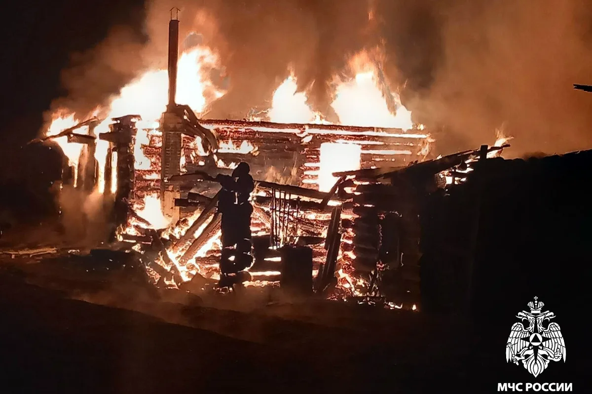 В половине второго ночи на пульт дежурного поступил сигнал о том, что в деревне Урусовской на улице Центральной полыхает частный жилой дом.