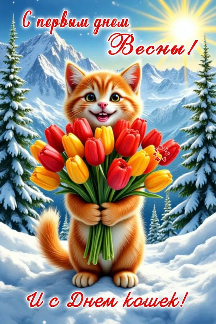Поздравляем вас с первым днём весны и Днём кошек! Пусть каждый день будет солнечным, радостным и полным кошачьих мурлыкающих моментов! 🌷🐱🐈