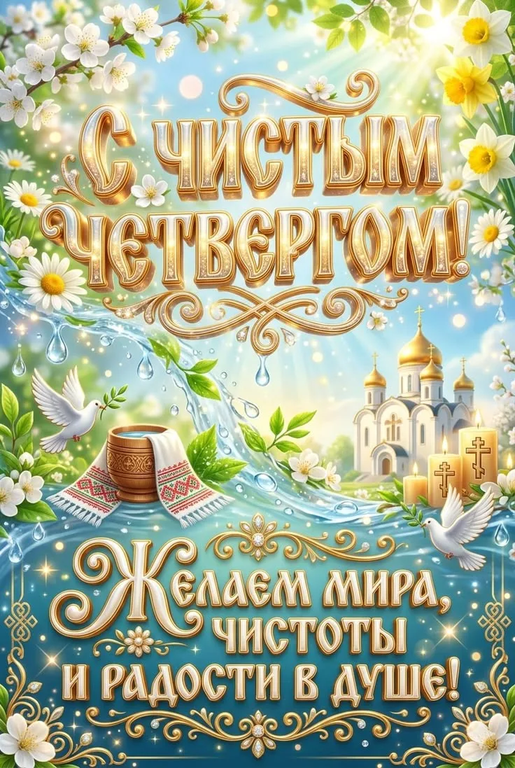 💦💧💦 С Великим Чистым четвергом! Пусть всё хорошее сбывается, а проблемы все смываются!
