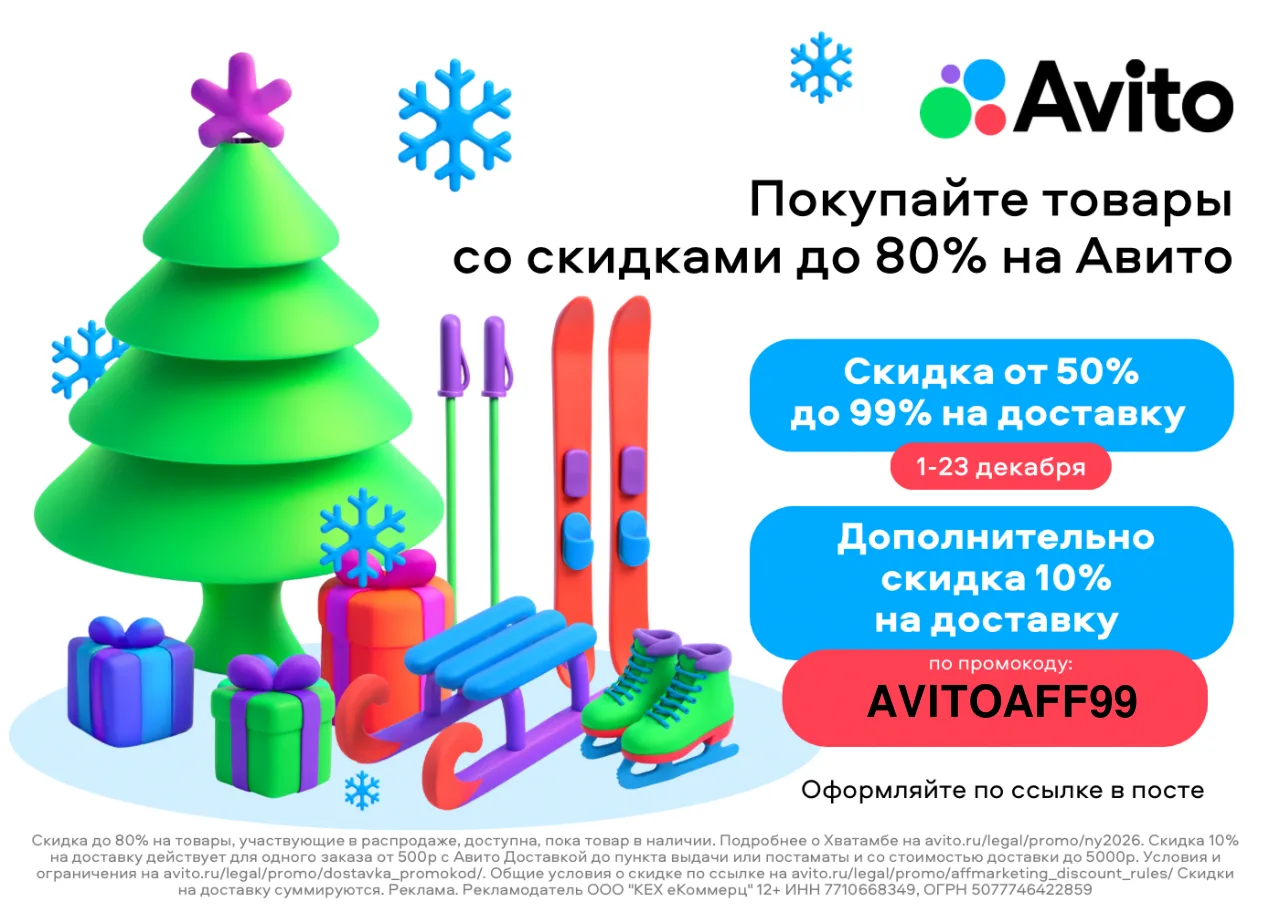 ❄️Общие условия о скидке по ссылке на https://avito.ru/legal/promo/affmarketing_discount_rules/