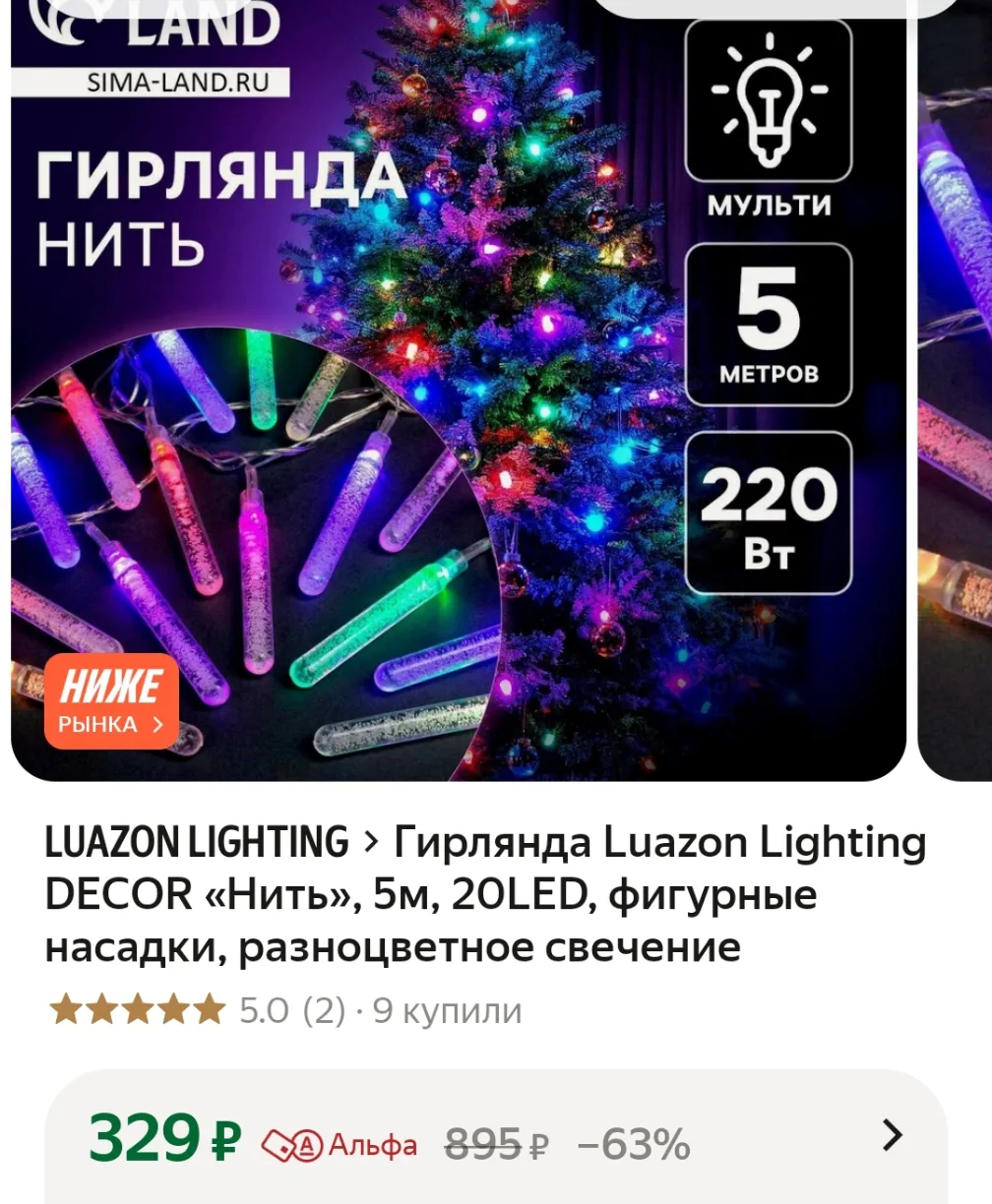 🎄 Гирлянда нить с сосульками 5 м от продавца Сима-ленд на Яндекс.Маркет!