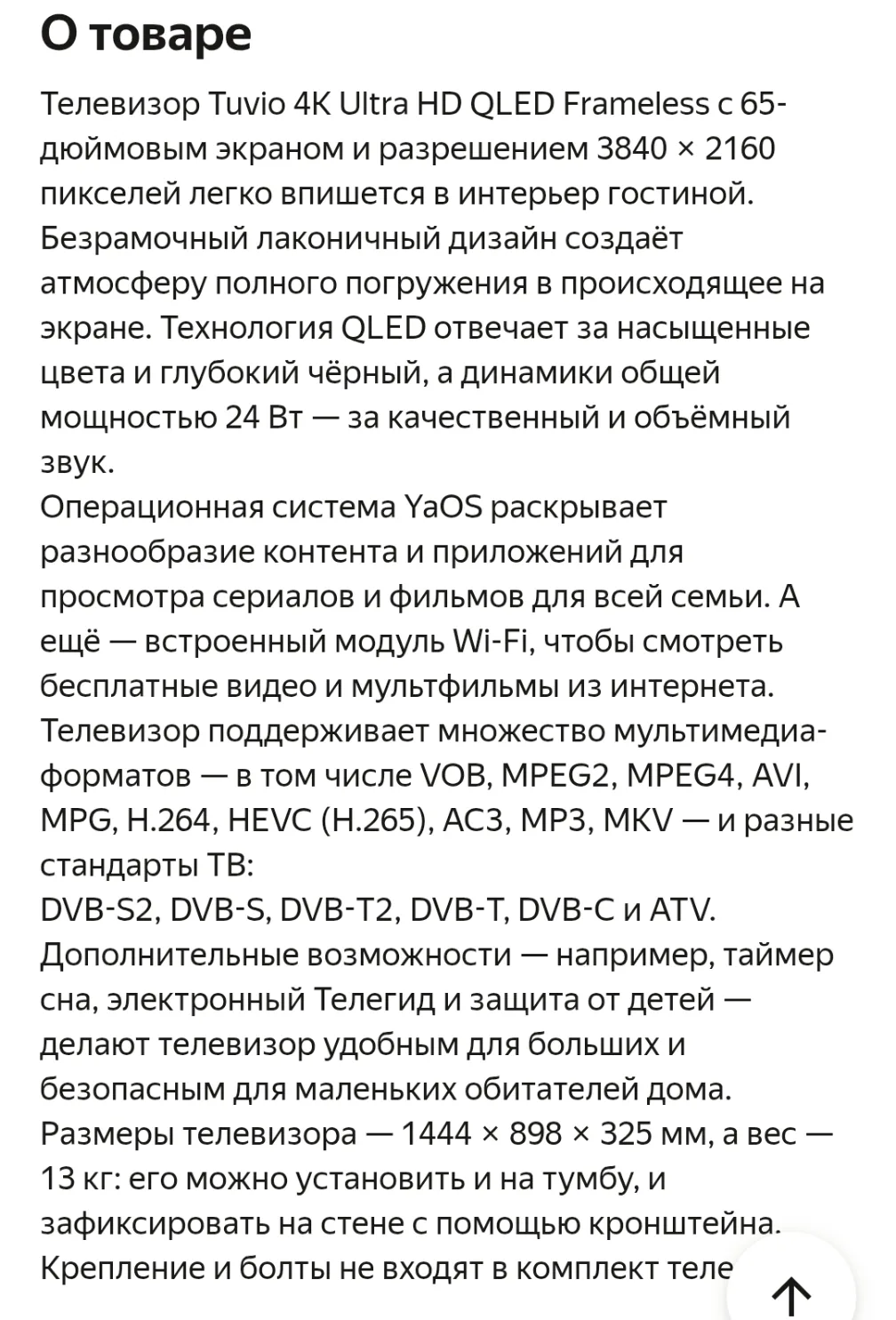 💛 Суперцена на огромный телевизор Tuvio с Алисой, диагональ 65’’ на Яндекс.Маркет!
