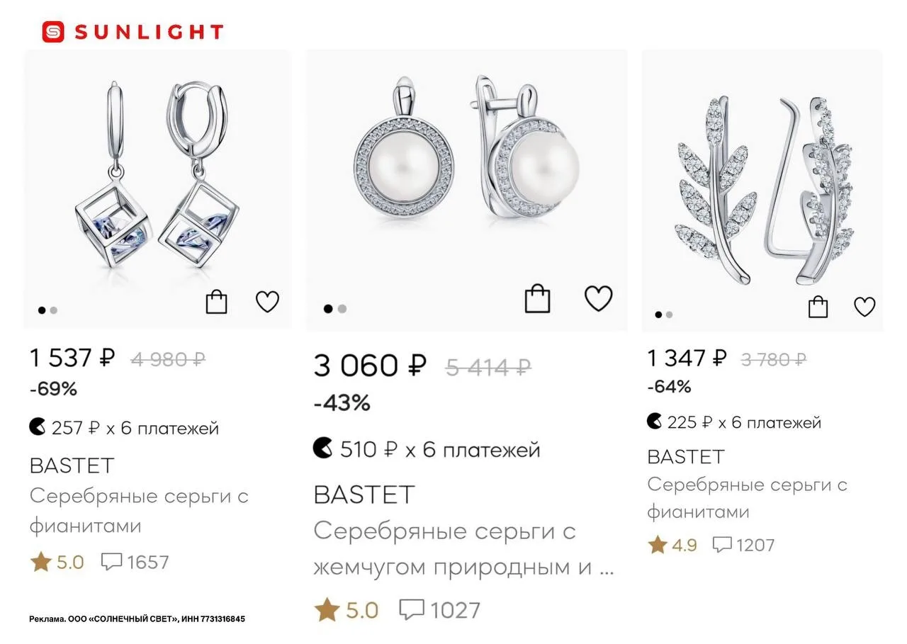 *На весь ассортимент украшений предоставляется скидка до -95%, которая складывается из прямой скидки, скидки по промокоду и бонусов, которыми можно оплатить до 90% от стоимости.