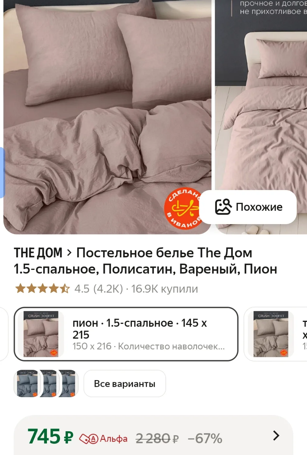 и 1.5 спальное бельё по 600 руб. Смотрите в карточке товара.
