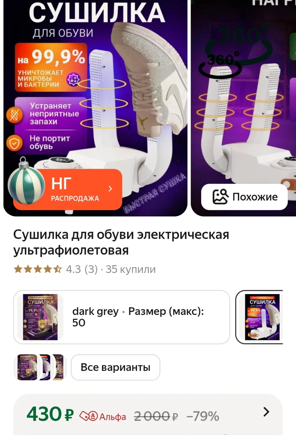 🔥 Сушилка фен с ультрафиолетом для обуви по отличной цене 430 руб. на Яндекс.Маркет!