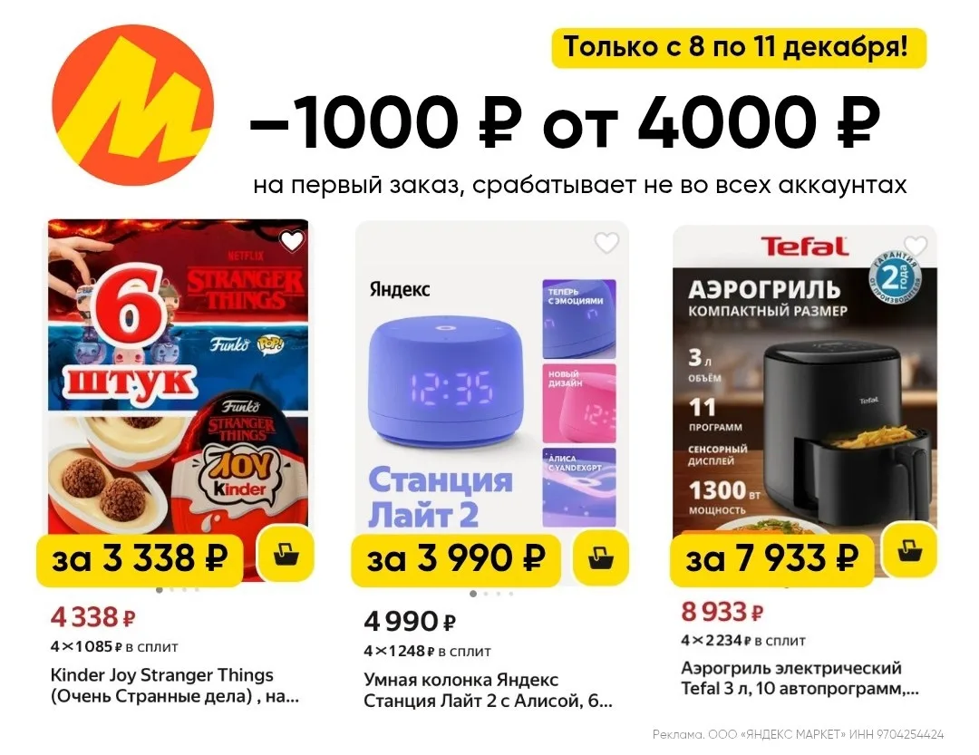 Выгодная скидка на первый заказ на Яндекс Маркет работает только сегодня ⚡️