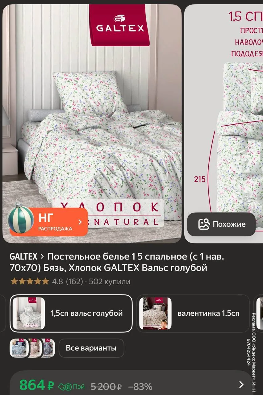 🩷 Постельное бельё двухспальное Василиса за 761 руб. на Яндекс.Маркет!