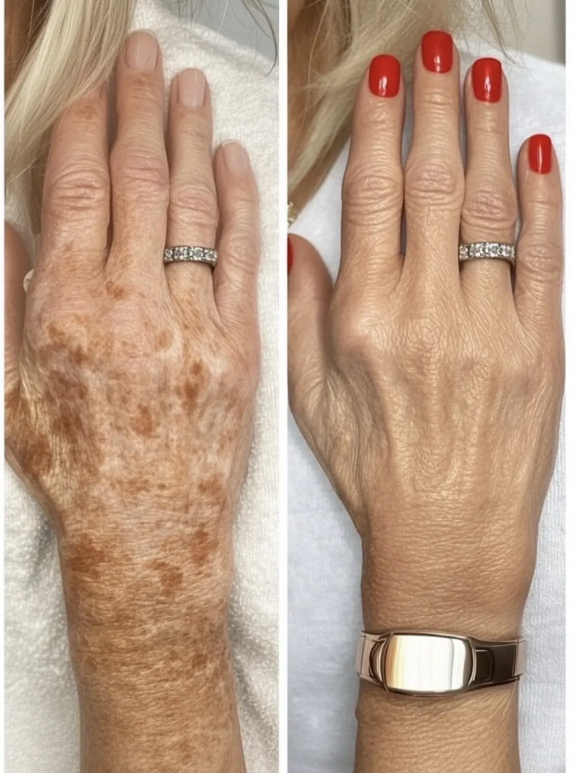 Через три недели пятна посветлели заметно. Через полтора месяца — я смотрела на свои руки и не узнавала их. Тон выровнялся, кожа стала мягче, и эти проклятые коричневые карты на тыльной стороне ладони почти растворились.