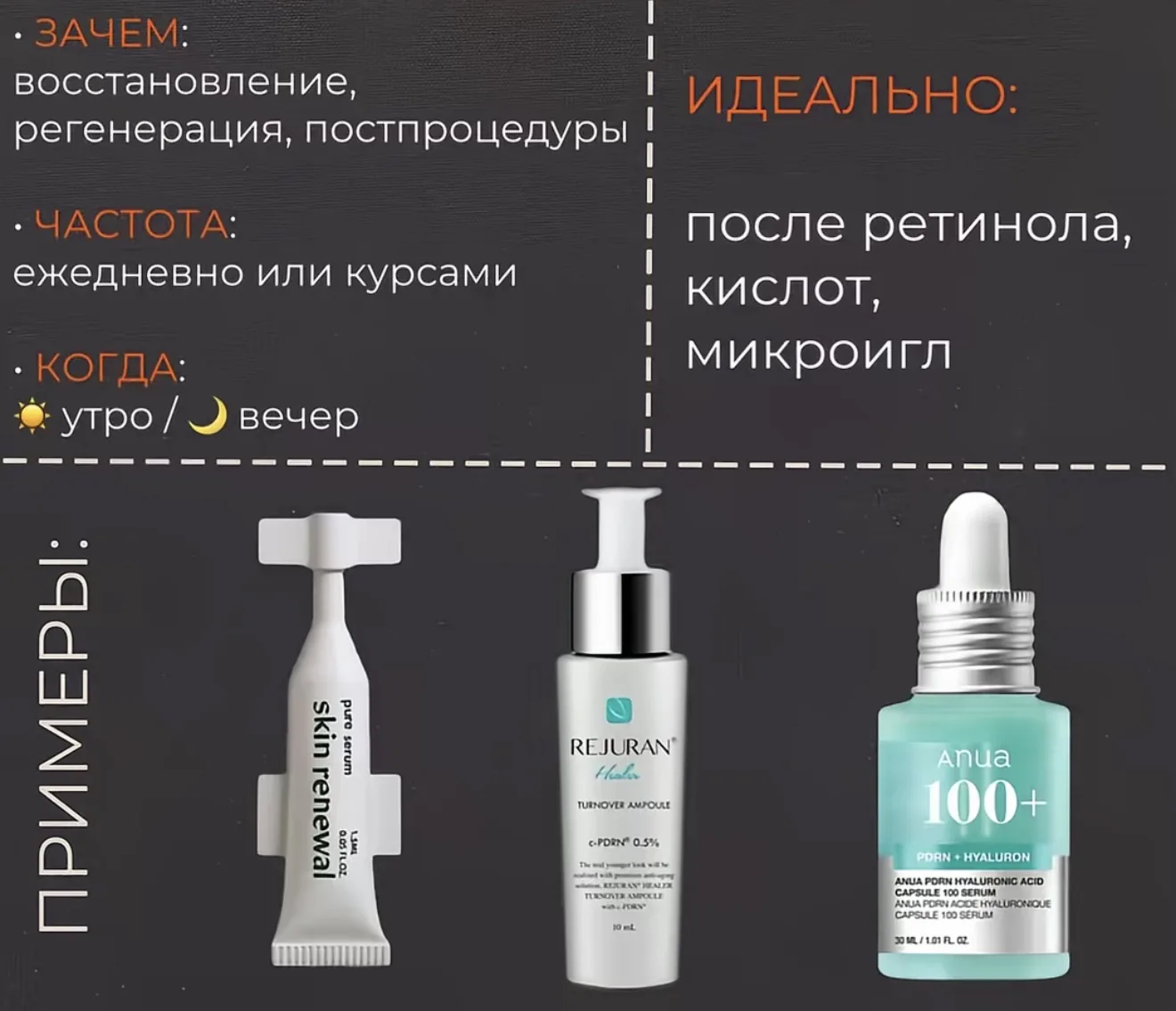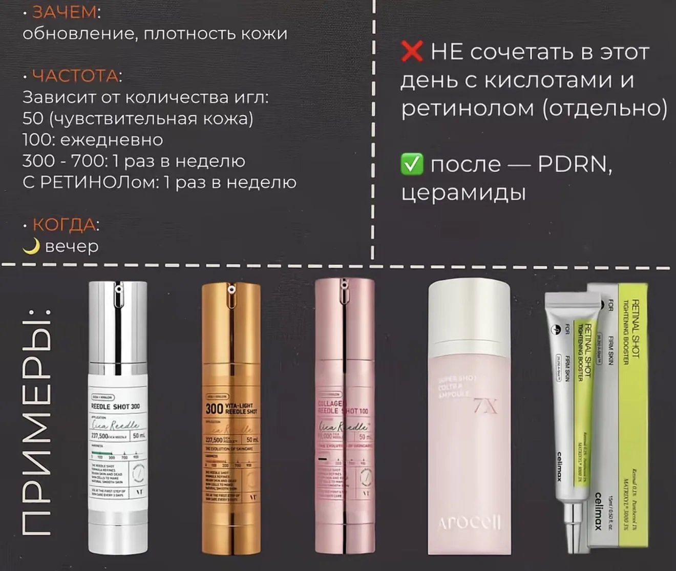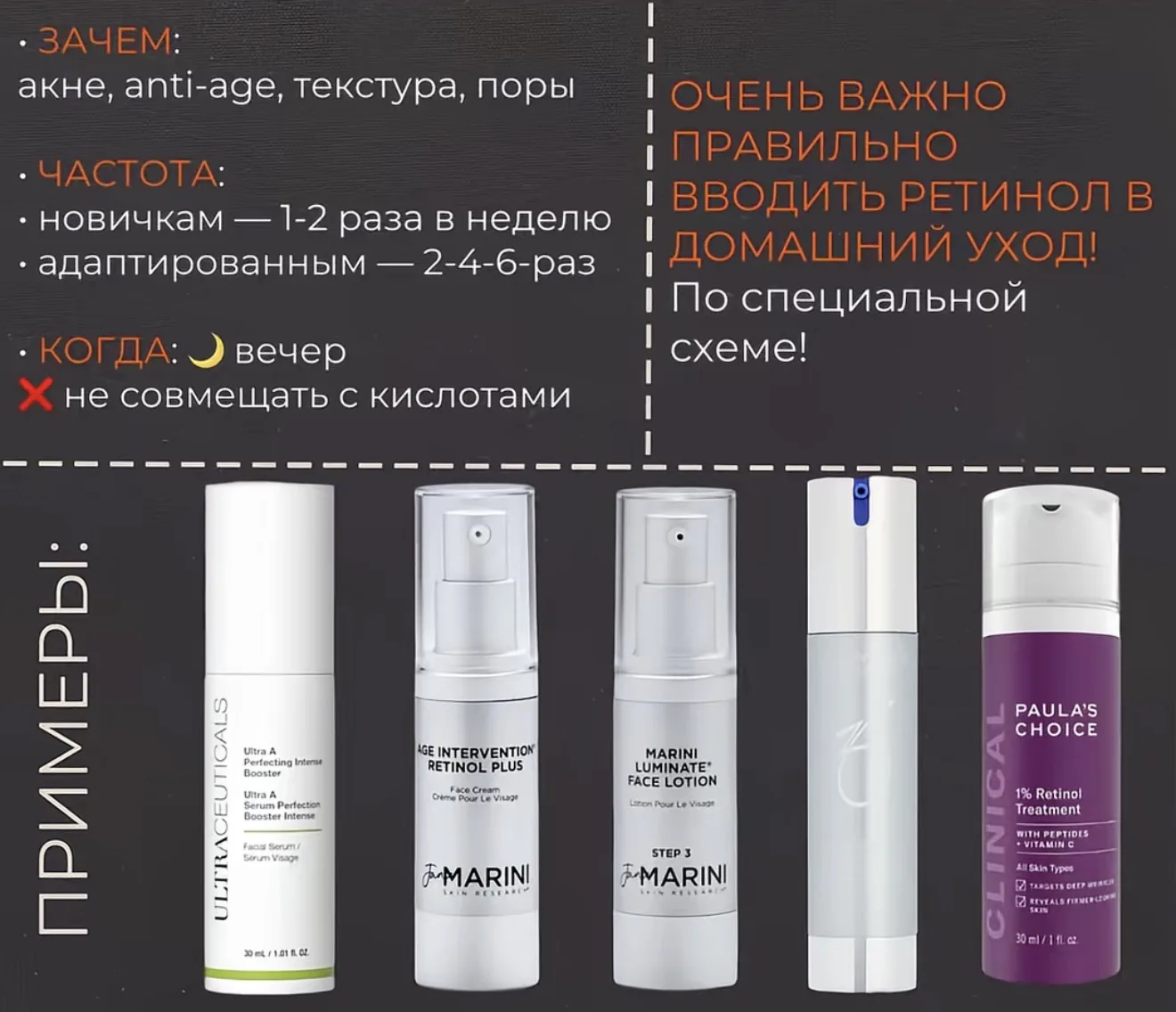 · Ретинол (витамин А): Лучшее средство для стимуляции обновления клеток и разглаживания морщин. Вводить осторожно, только на ночь и не забывать про SPF утром!