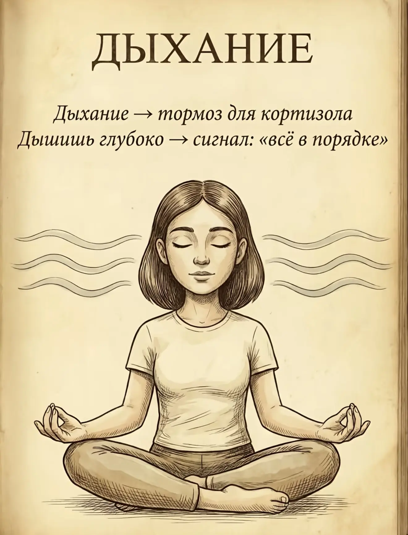 Кортизол не слушает логику. Ему всё равно, что вы не в саванне. Но он слушает ритм дыхания.