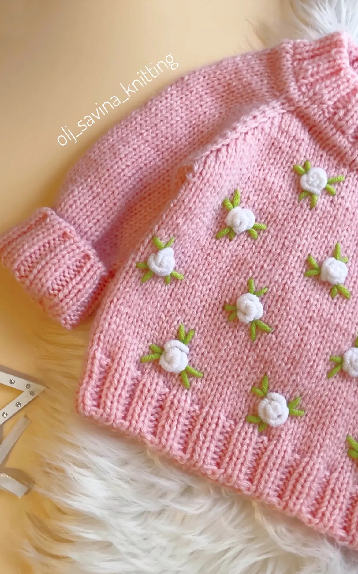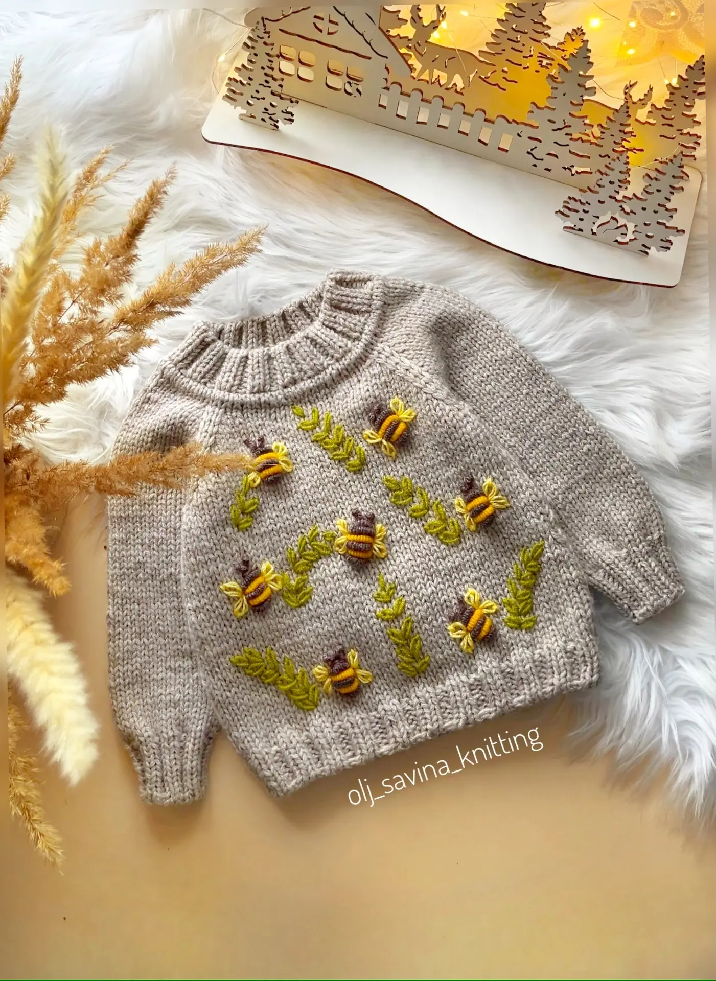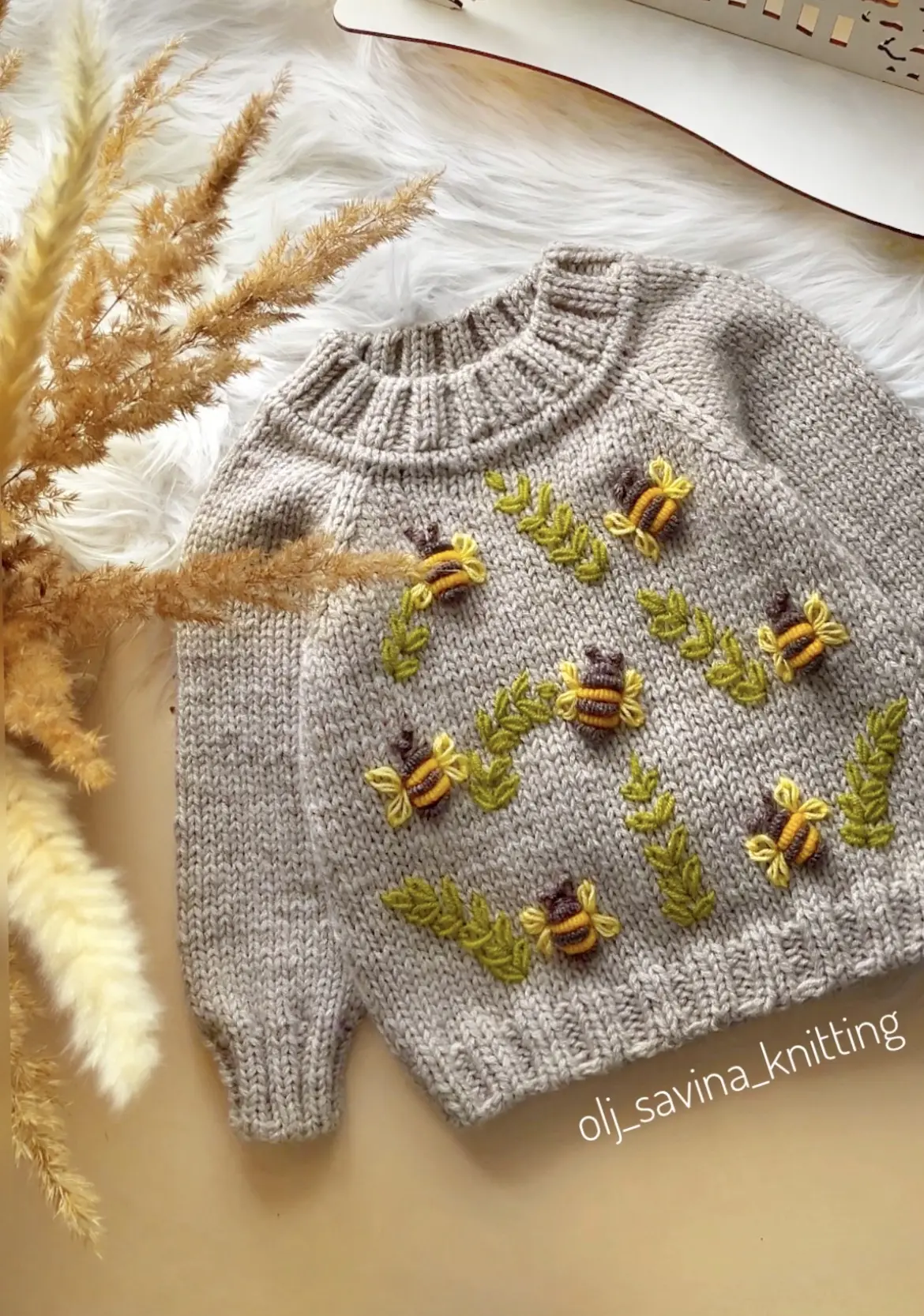 Такой свитер не только тёплый и уютный, но и очень красивый, благодаря ручной вышивке и вниманию к деталям. 🐝