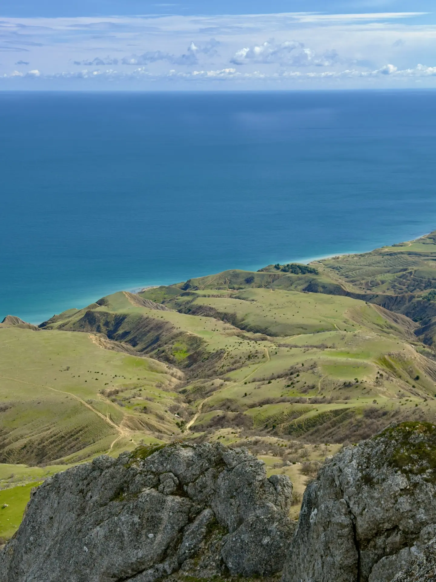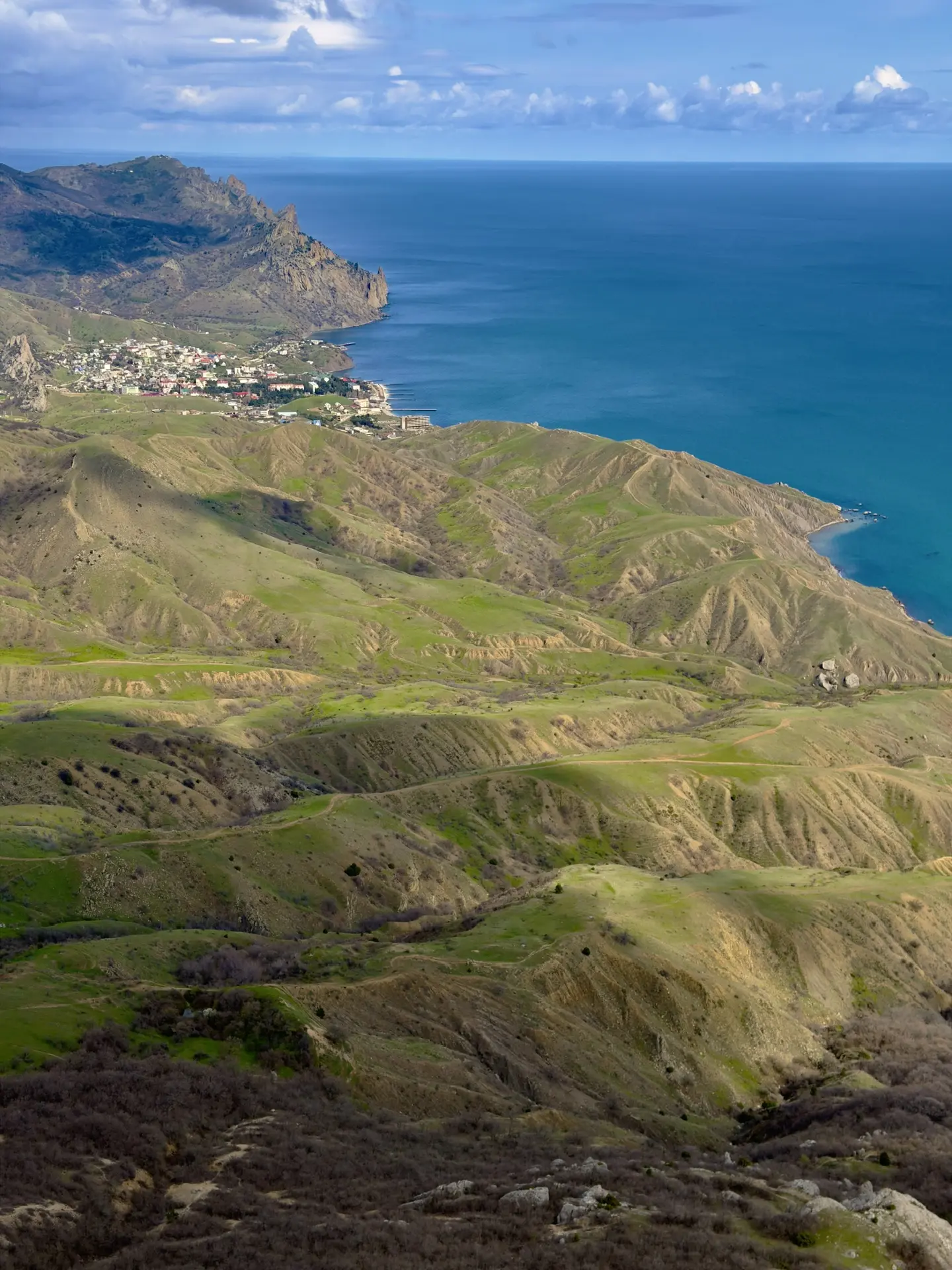 В апреле полуостров становится пронзительно зелёным. Это не та выгоревшая на солнце трава, которую мы увидим в июле, а сочная, яркая, почти неоновая зелень. Воздух в это время особенный. В нём смешалось всё: запах влажной земли, солёного моря и первых цветов. Хочется просто идти в горы и ловить этот момент пробуждения.