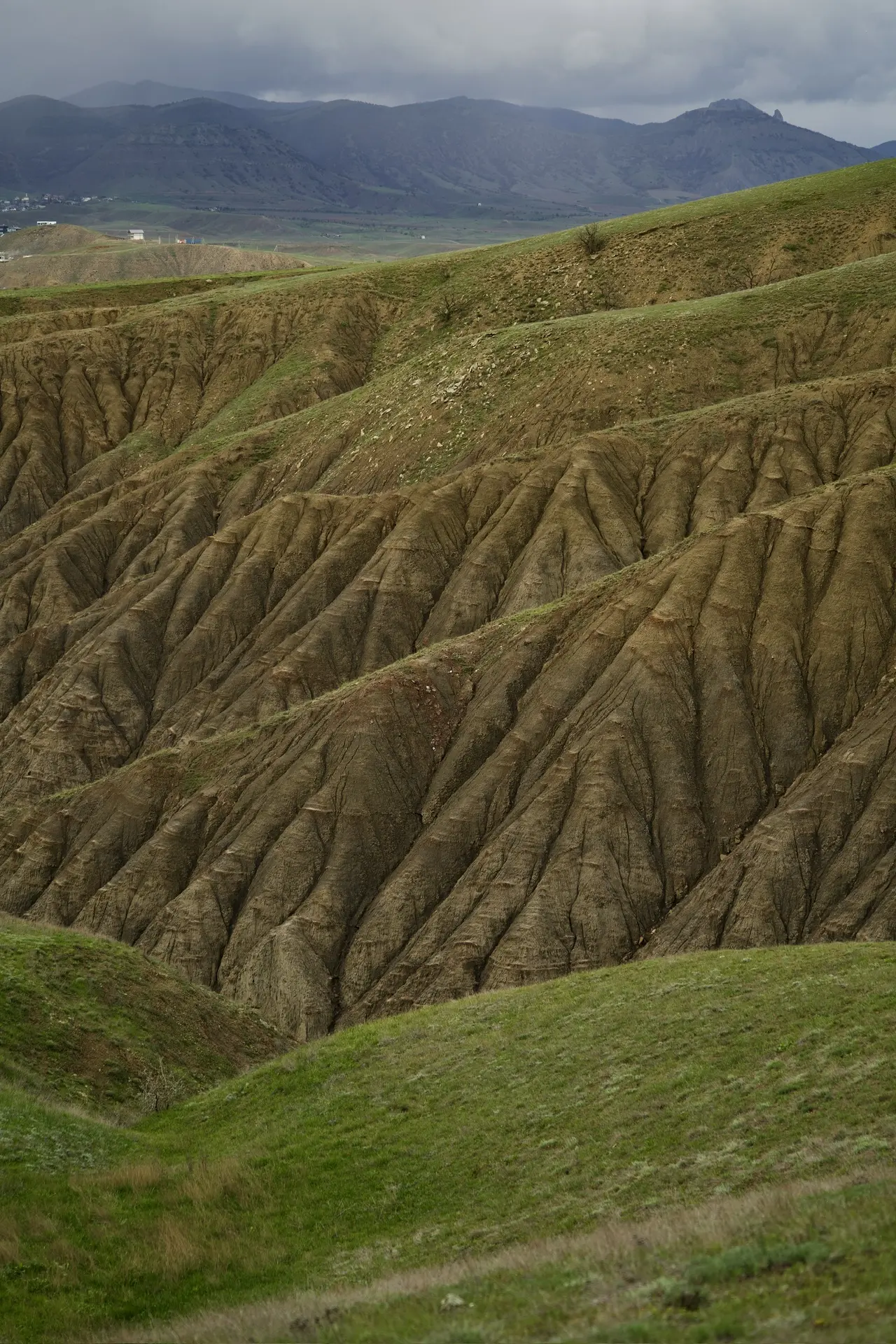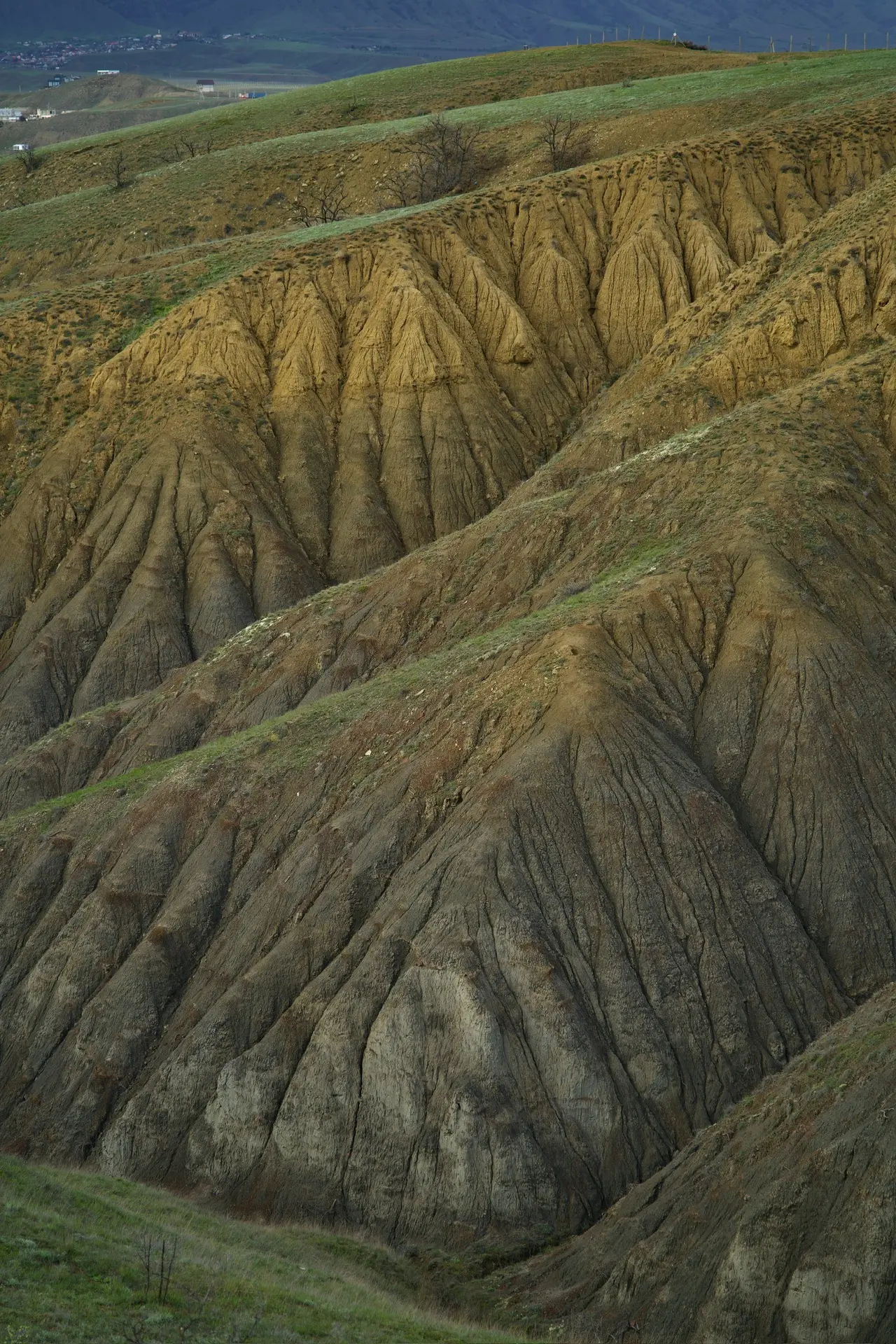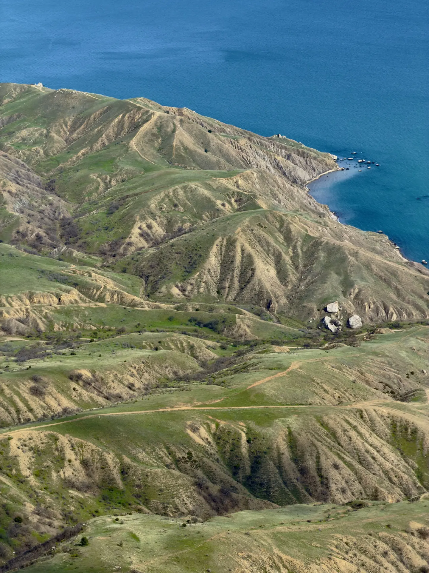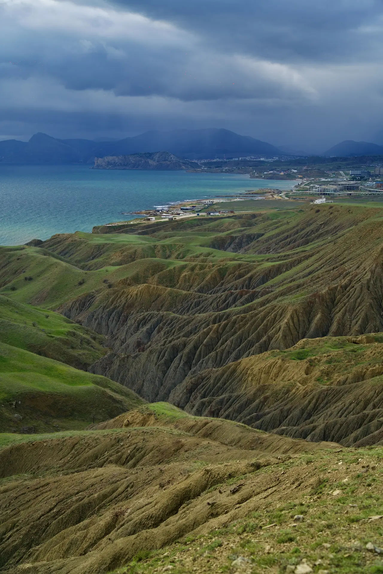 На фото один из самых выразительных пейзажей Меганома: овраги и глинистые разломы, которые выглядят как застывшие волны каменного моря. Здесь особенно остро чувствуешь, каким разным может быть Крым. Не только море, кипарисы и дворцы, но и такая суровая, почти марсианская красота. Здесь хочется не спешить, не разговаривать слишком громко и просто смотреть по сторонам. Потому что каждый склон, каждый изгиб рельефа будто рассказывает свою древнюю историю.