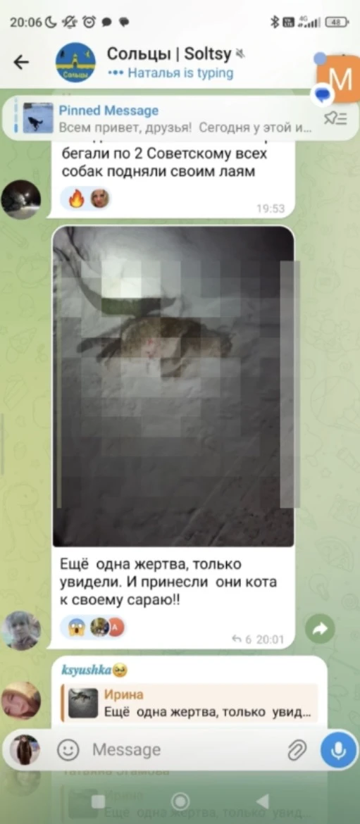 Сами собаки брошены, их не кормят. От голода стали агрессивными и опасными. Живут закрытыми в сарае. Неравнодушные соседи кидали снег в щелки сарая, чтобы утолить жажду животным. Кормят так же соседи. В итоге они вырвались на свободу. Ломают замки на курятниках,треплют кошек (загрызают их прямо на глазах у людей), трупы носят к хозяевам во двор, бегают голодные и тощие.