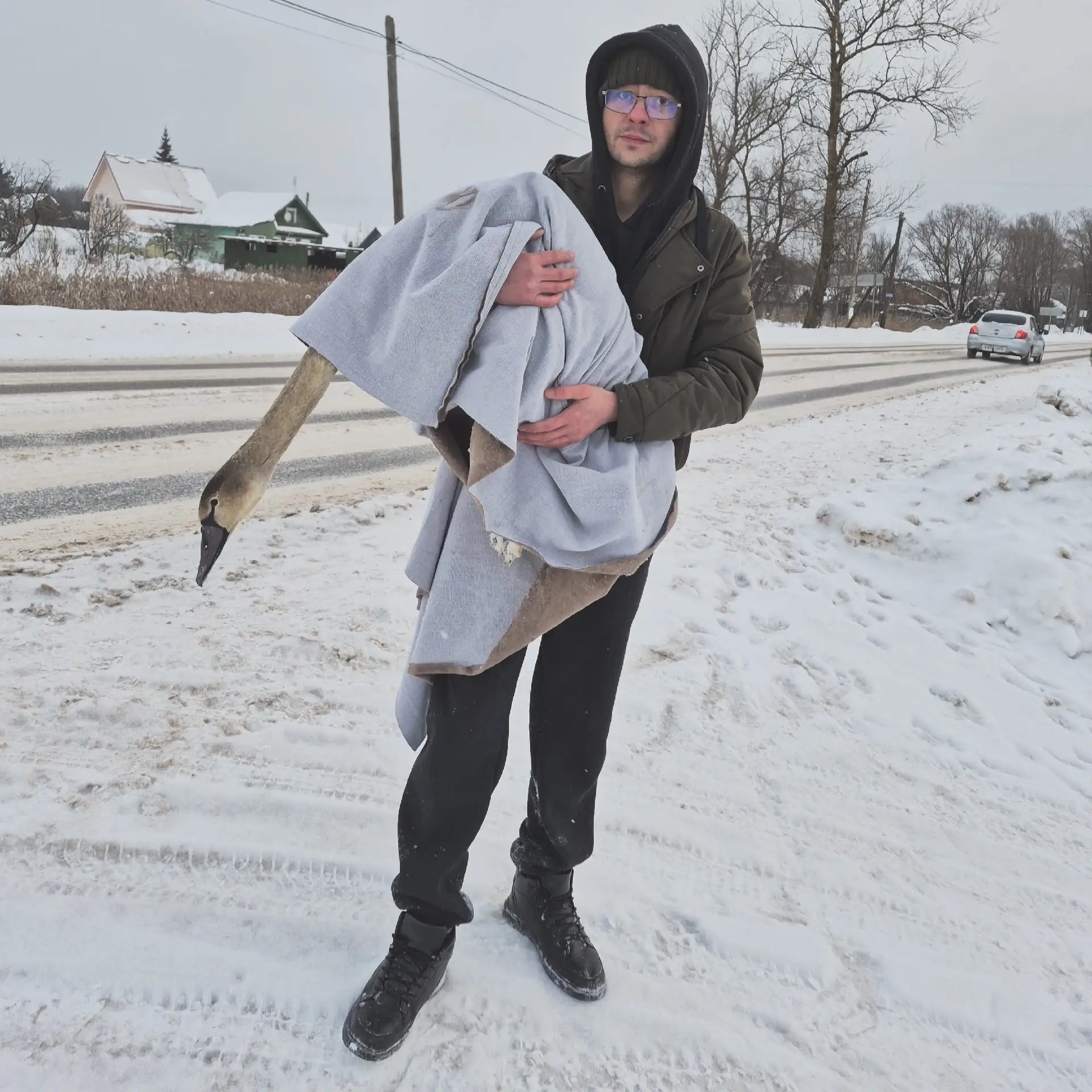 Сегодня утром в Старой Руссе стая собак напала на молодого лебедя. Хочу выразить огромную благодарность спасателю. Как здорово, что есть на свете такие неравнодушные люди 🫶