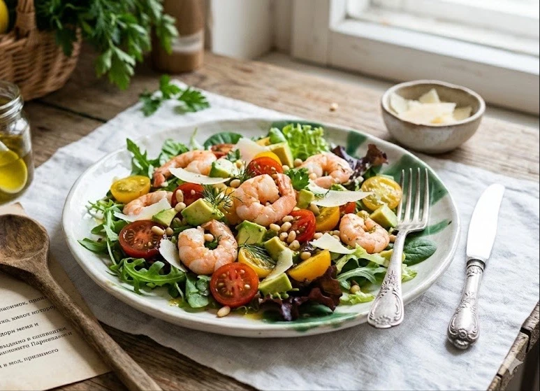 🥗Салат «Аленький цветочек» с креветками и авокадо🥗