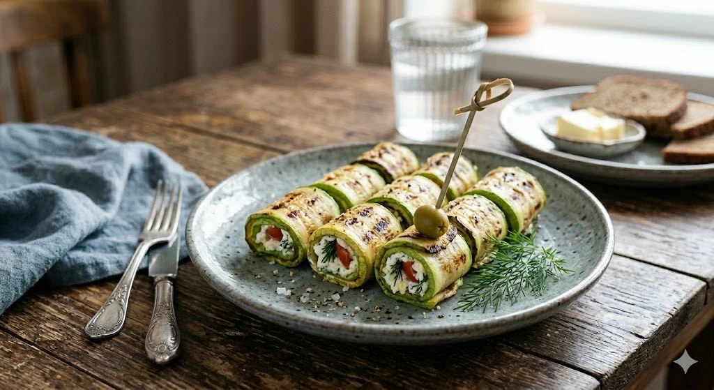 👩🍳Как готовить: Кабачки нарежьте вдоль тонкими пластинами, посолите и обжарьте на сковороде с двух сторон до золотистого цвета, затем выложите на бумажное полотенце. Для начинки смешайте творожный сыр с измельченным чесноком и мелко порубленным укропом. Помидор нарежьте небольшими дольками. На край каждой полоски кабачка положите ложку начинки и кусочек помидора, сверните плотным рулетиком.