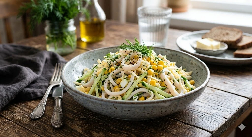 🥗Салат «Жемчужина Посейдона» с кальмарами🥗
