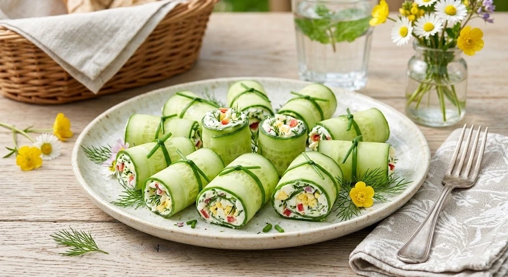 🥗Весенний закусочный рулет «Свежесть» с огурцом и зеленью🥗