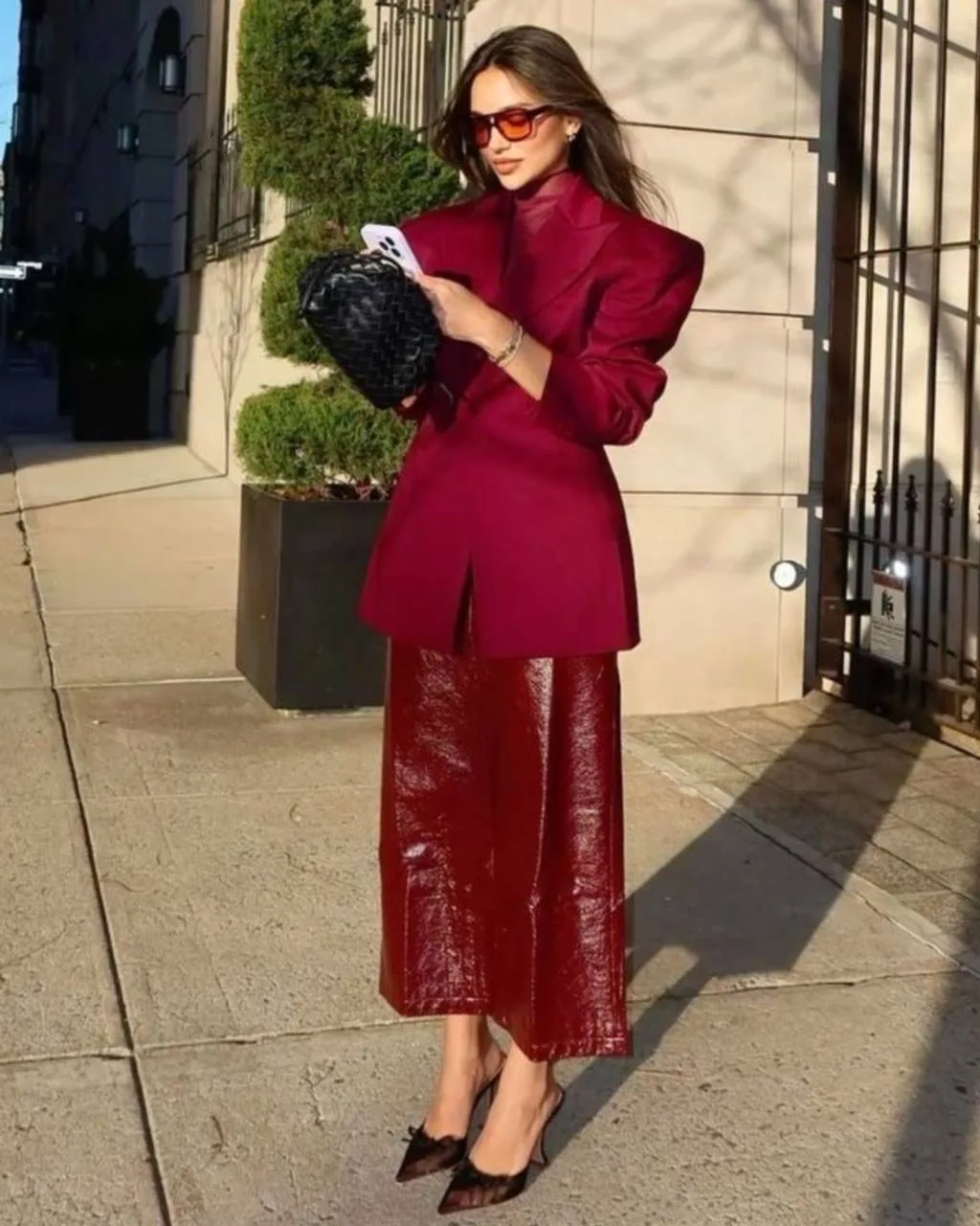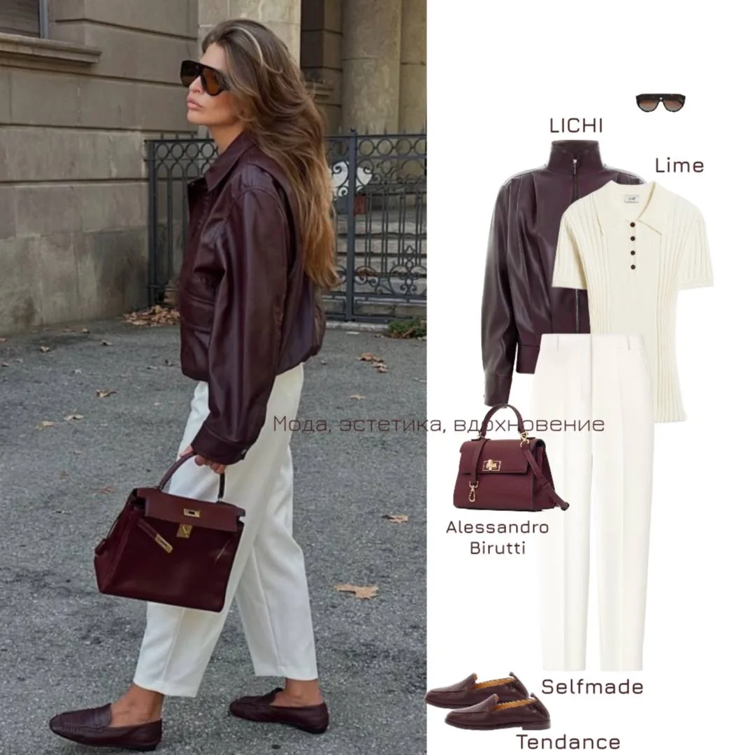 Повседневный образ с кожаной курткой в благородном оттенке бургунди❤️🔥