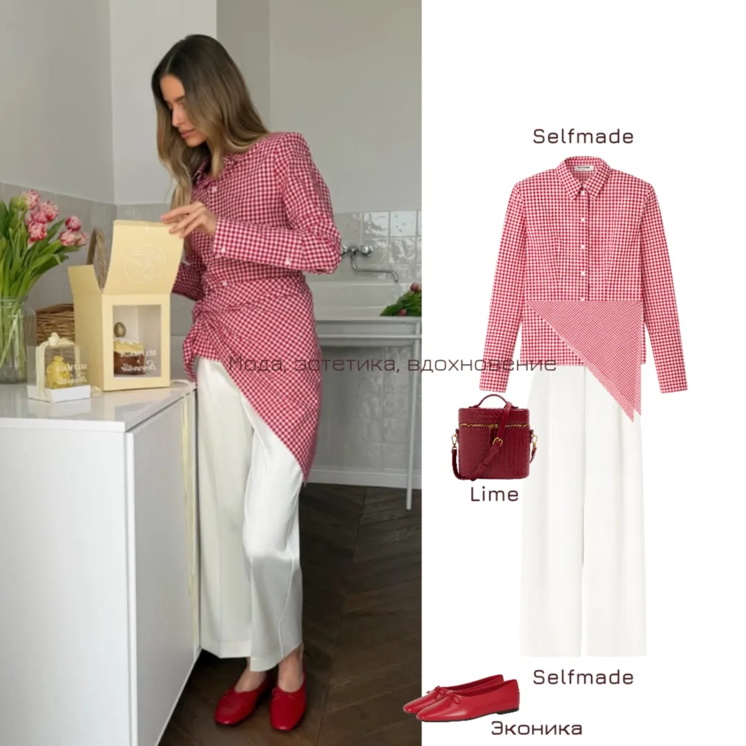 Рубашка, рубашка, брюки, брюки, ботильоны, сумка