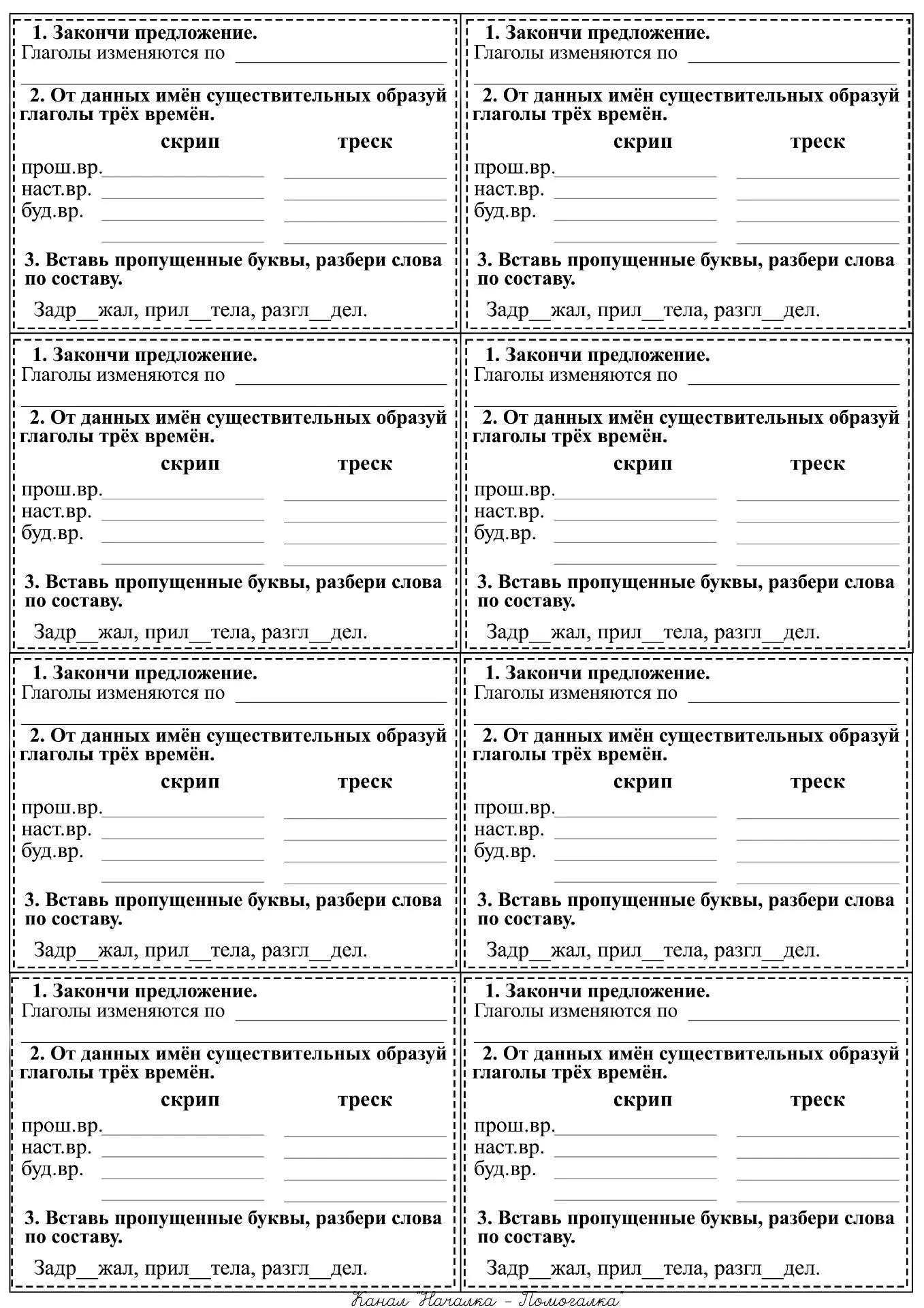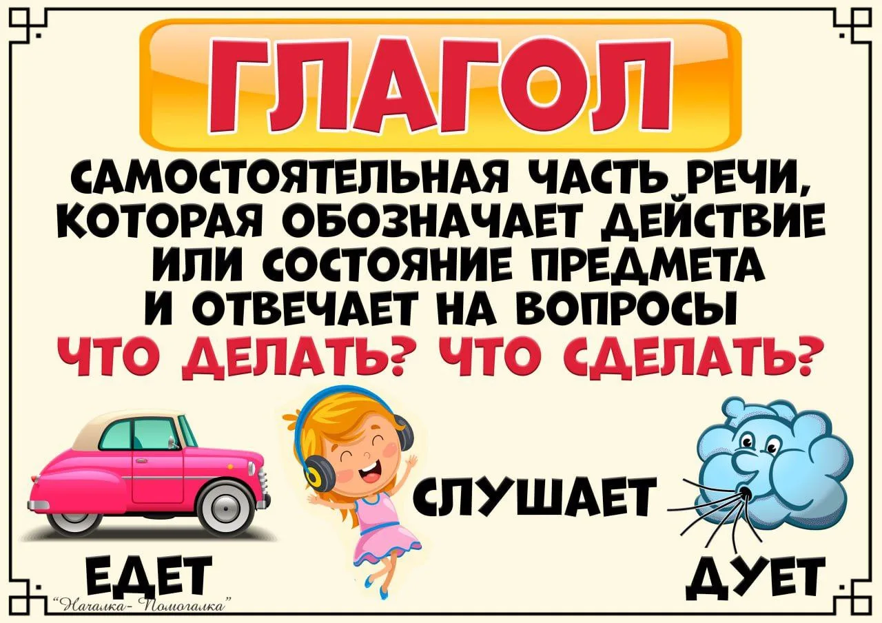 КАРТОЧКА - ВКЛЕЙКА. ГЛАГОЛ. 3 КЛАСС В формате PDF 👇