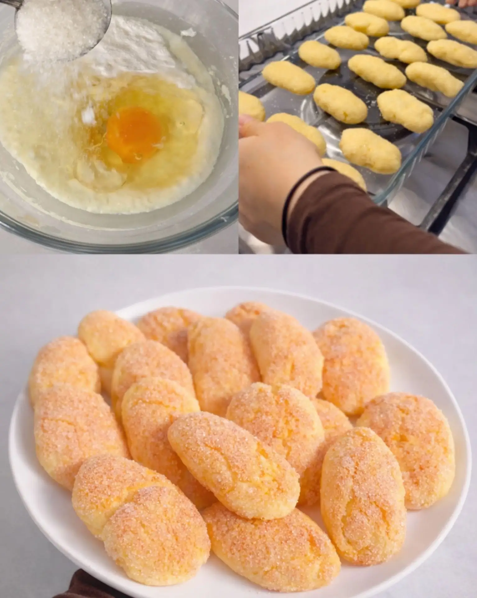1. Яйца взбить с сахаром до пышности. Добавить размягчённое сливочное масло и сметану, перемешать. Всыпать соду и муку, замесить однородное тесто.