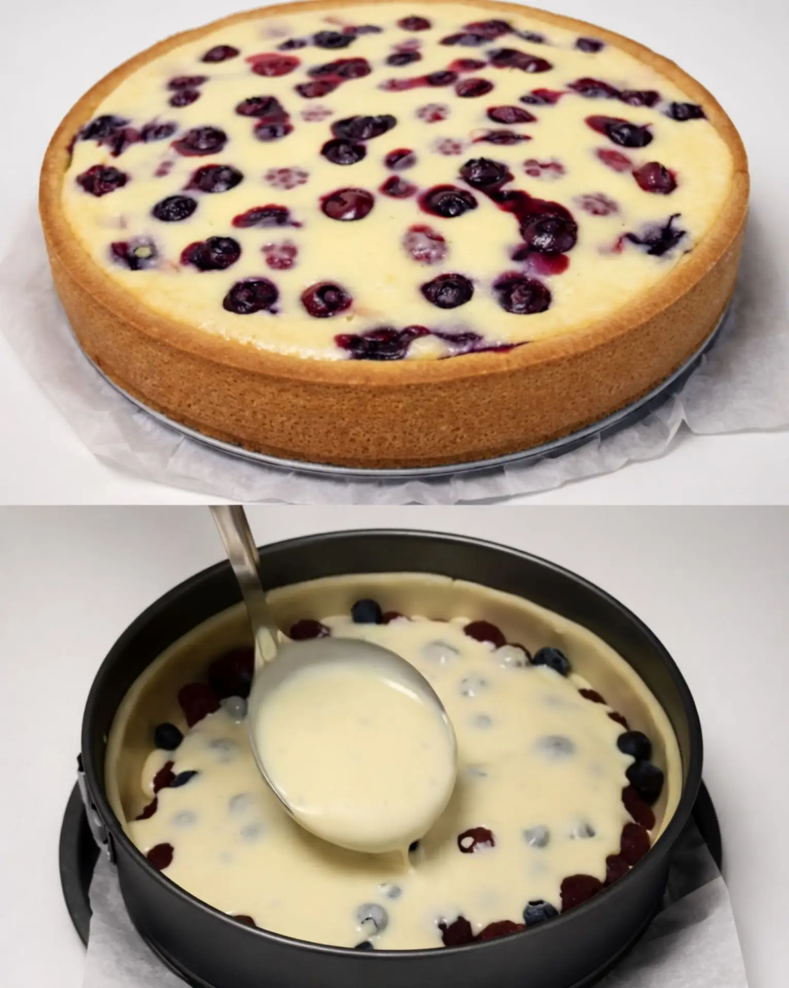 ЗАЛИВНОЙ ПИРОГ С ЯГОДАМИ И СМЕТАННОЙ ЗАЛИВКОЙ