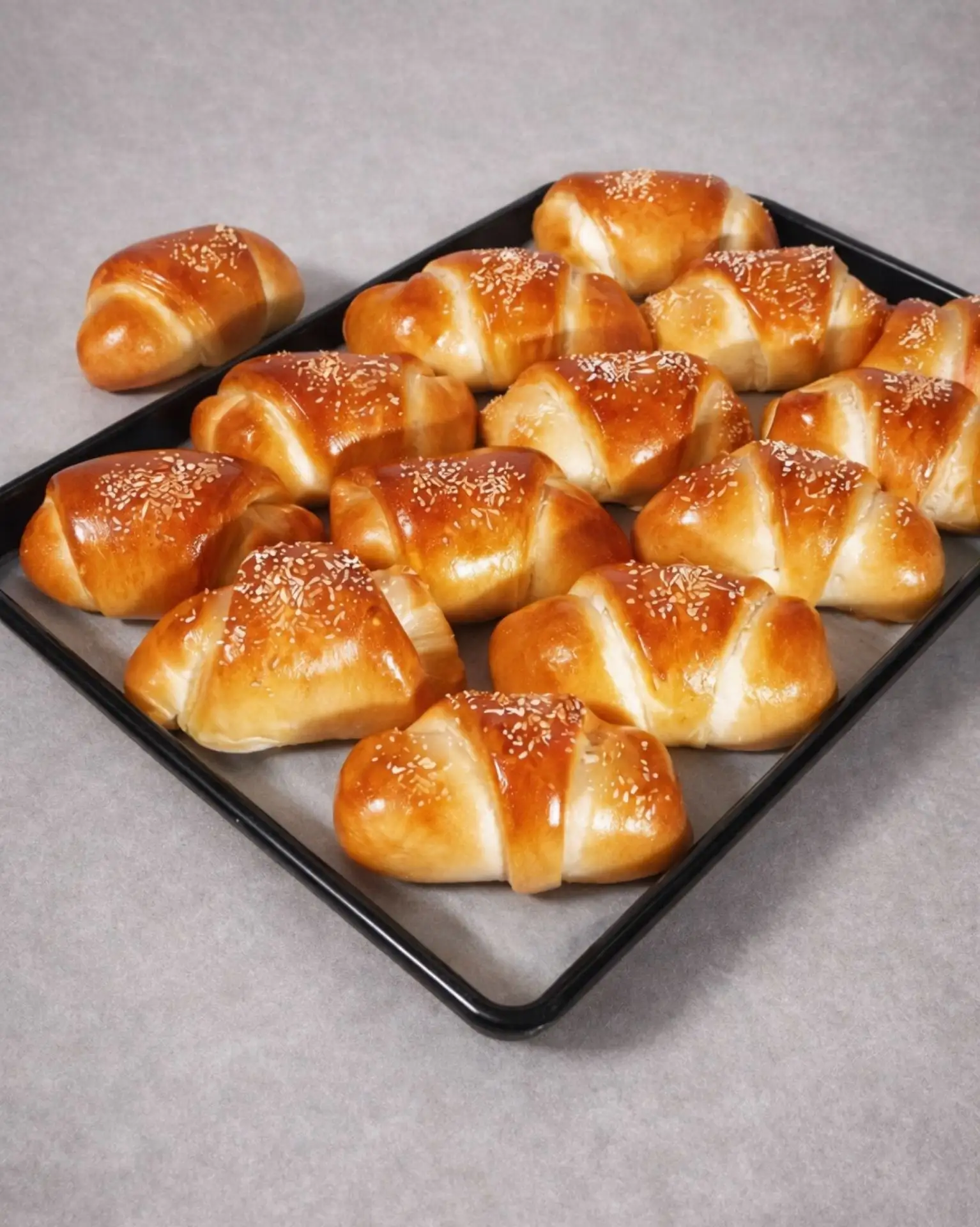 1. В миске соединить тёплое молоко и тёплую воду (около 30 °C), добавить сахар и дрожжи. Перемешать и оставить на 10 минут до появления пышной «шапочки».