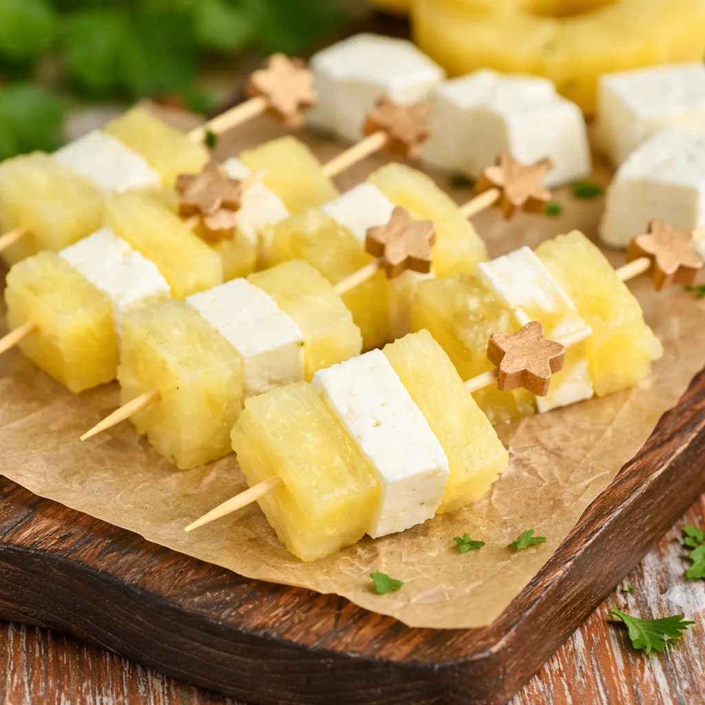 Закуска готовится на основе отварной красной рыбы с сыром и яйцом, с начинкой из креветок и ананаса. Подаётся в виде порционных шариков на шпажках.