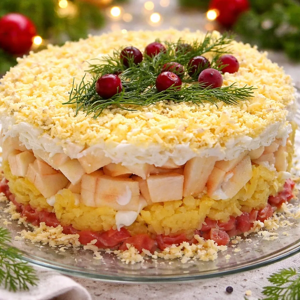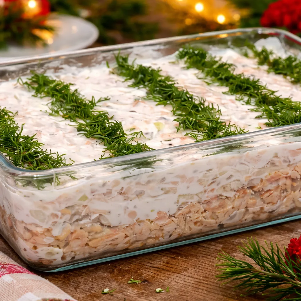 Нежный и атмосферный закусочный салат «Курица под снегом» — в зимние праздники готовлю его всё чаще