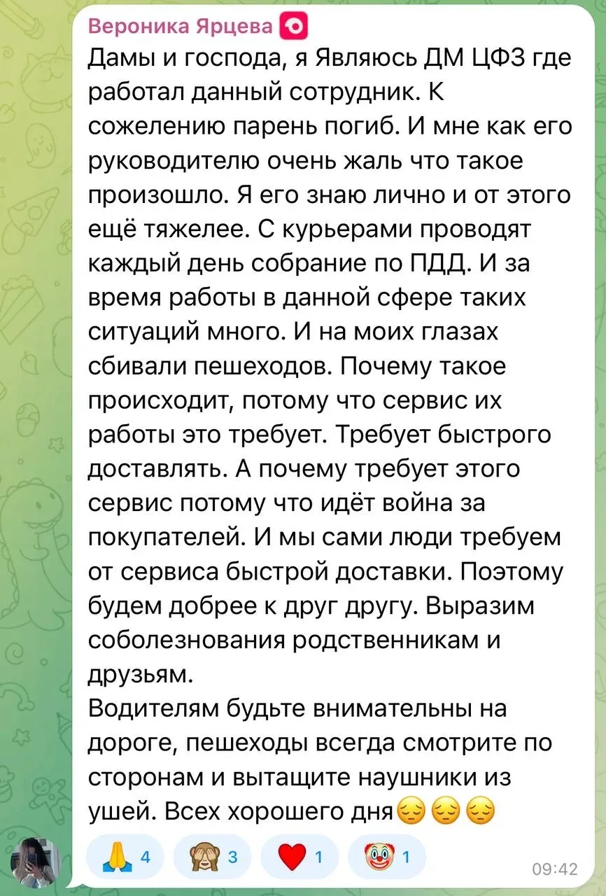 В Москве трудолюбивый таксист Дилмурод насмерть сбил трудолюбивого курьера Озодбека и осторожно убежал даже не оказав помощь.